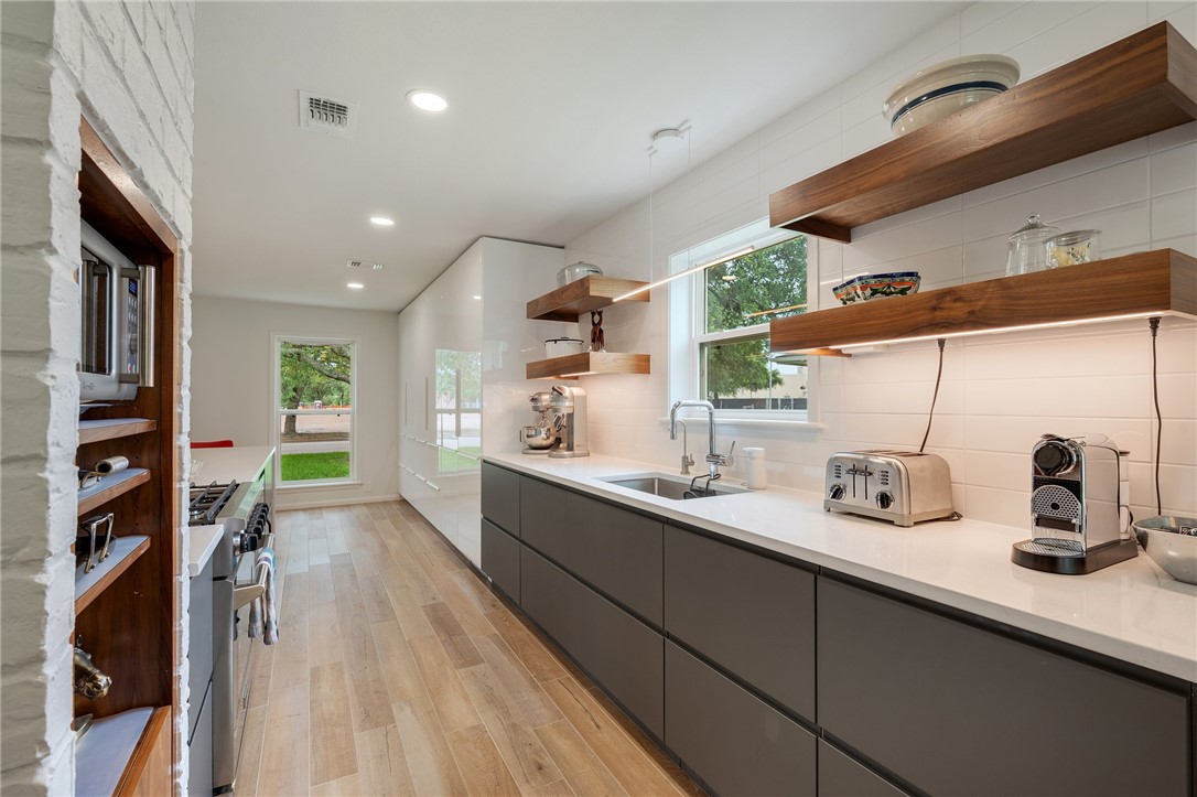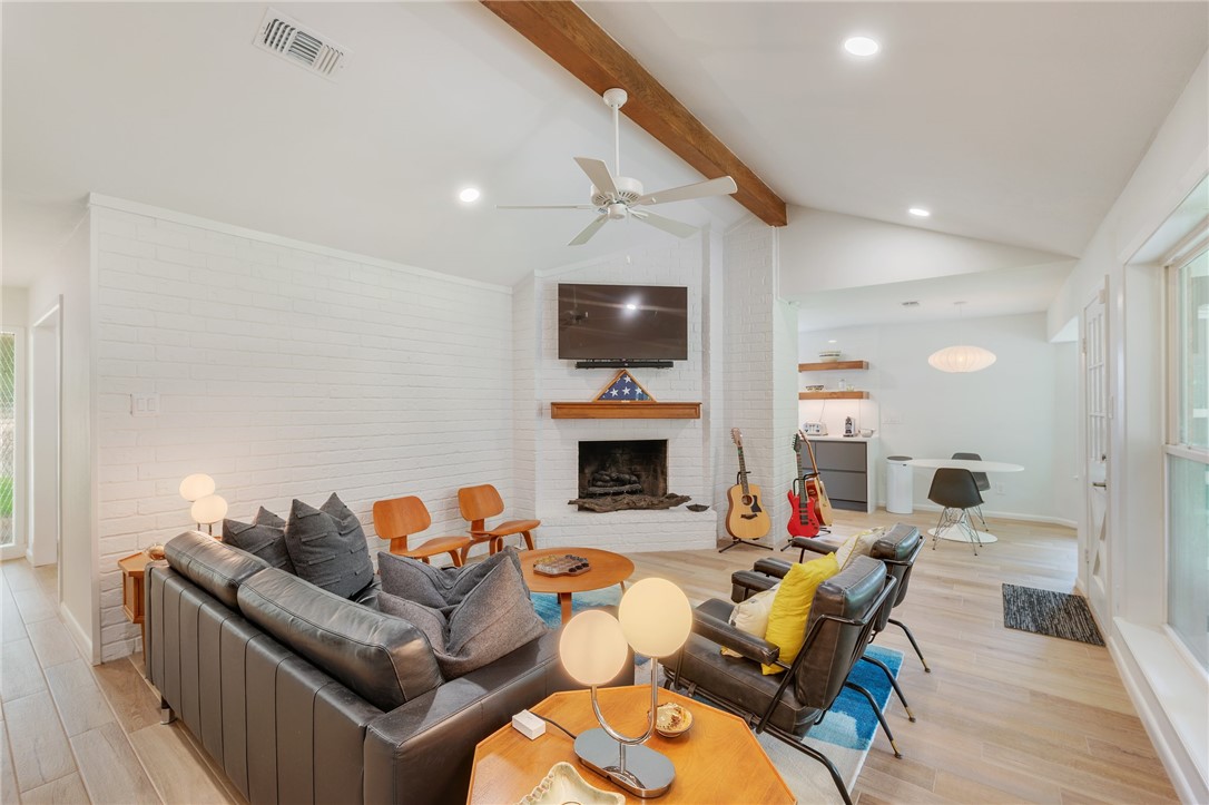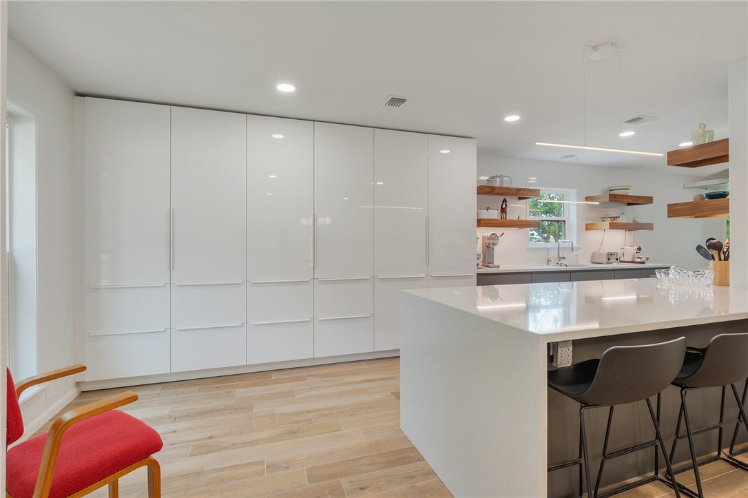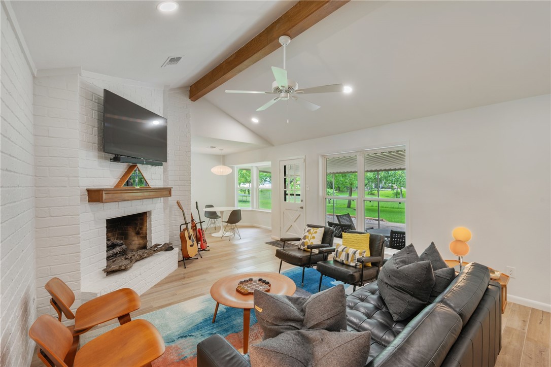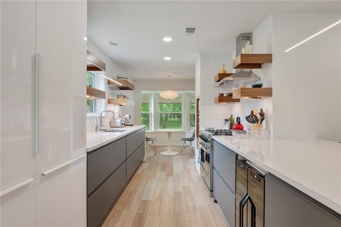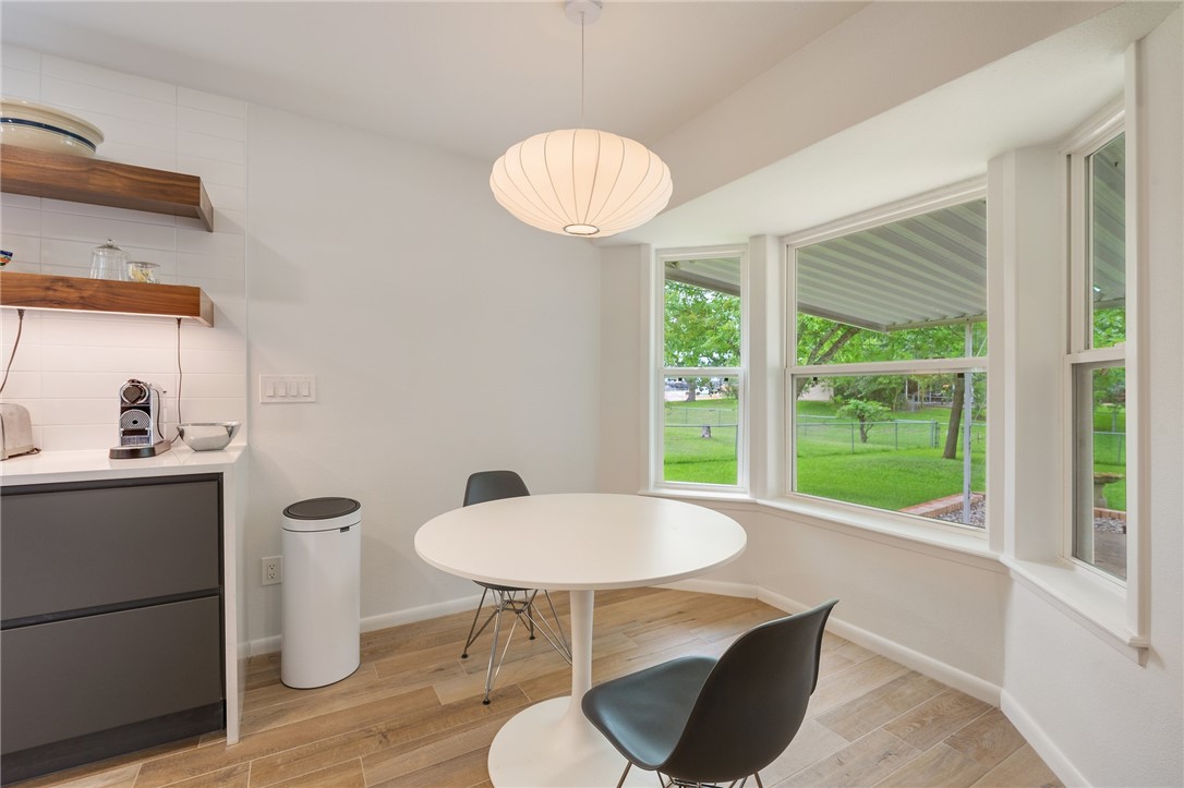 Introducing 1003 Guadalupe, an architect renovated residence with great attention to detail and excellent execution of work completed! This thoughtfully updated home features breath-taking kitchen, dining and living spaces plus 3 bedrooms, 2 full baths, and a spacious 2-car garage; all in the convenient and established neighborhood of Southwood in College Station. From the moment you enter the foyer there is crisp and cohesive presence to the home. The massive dining room flows seamlessly into a designers dream kitchen. Boasting Polyform style floor-to-ceiling cabinetry, with custom touches including built-in column refrigerator, new stainless steel appliance package, walnut floating shelfs and bookcase, all topped by Stratus Quartz counters. A breakfast nook overlooking the tranquil back yard connects to a vaulted family room with stunning painted brick wall and masonry fireplace. Two guest suites are serviced by the spacious shared hall bath. Primary suite situated privately in rear of home with en-suite bath and two walk-in closets. Durable wood-look tile flooring runs throughout the home, adding uniformity and function. The new laundry closet is situated on the bedroom corridor. Oversized garage provides storage and a utility sink. Enjoy the large backyard with mature trees, a covered patio, and sizable storage/workshop building. Located just minutes from top rated schools, parks, restaurants, and less than 10 minutes from Texas A&M University, this home is a rare find!