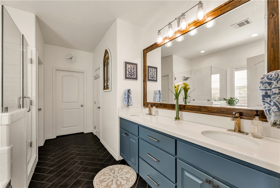 The primary suite is a true sanctuary with serene pool views and a spa-inspired bath featuring striking herringbone pattern tile floors, a soaking tub, walk-in shower, and an expansive closet. Upstairs, three additional bedrooms await; one with custom built-ins perfect for a home office. Two share a Jack-and-Jill bath, while the third enjoys a private en-suite.