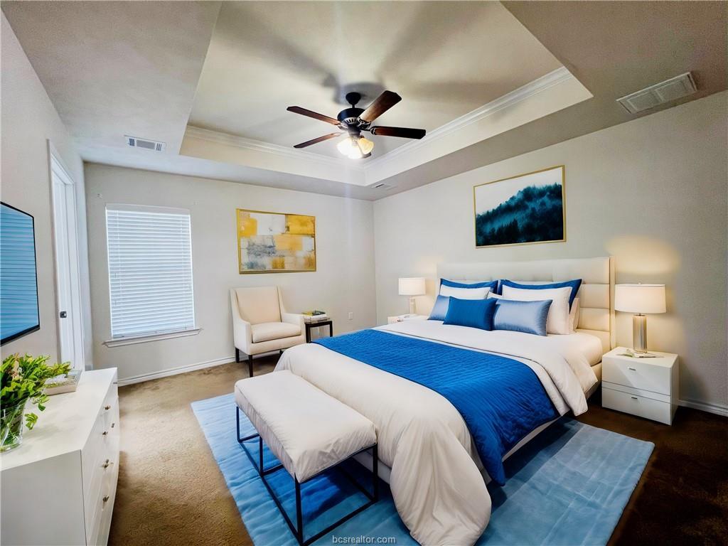 This well cared for home in Dove Crossing is a 4 bedroom, 2 bathroom home on a corner lot. Spacious Living area with a fireplace, Kitchen & Dining room with granite countertops and stainless steel appliances. The primary bedroom features a luxurious coffered ceiling and the en-suite bath has double sinks, soaker tub, and stand up shower. New Paint and Cleaned Carpets, Laminate flooring, ceiling fans throughout, plus a covered back patio – perfect for entertaining or just relaxing after a long day. The lot backs up to an alley so no shared back fence! This home is close to shopping, College Station High School, Creek View Elementary, and Cypress Grove Intermediate schools. Don't miss out on this amazing opportunity. Seller is offering a $2,500 allowance toward closing costs, Buy down Points or Take off the asking price. Refrigerator, Washer & Dryer are Negotiable. Call for your showing today. Great area in central South College Station. Neighborhood allows for Rentals.
