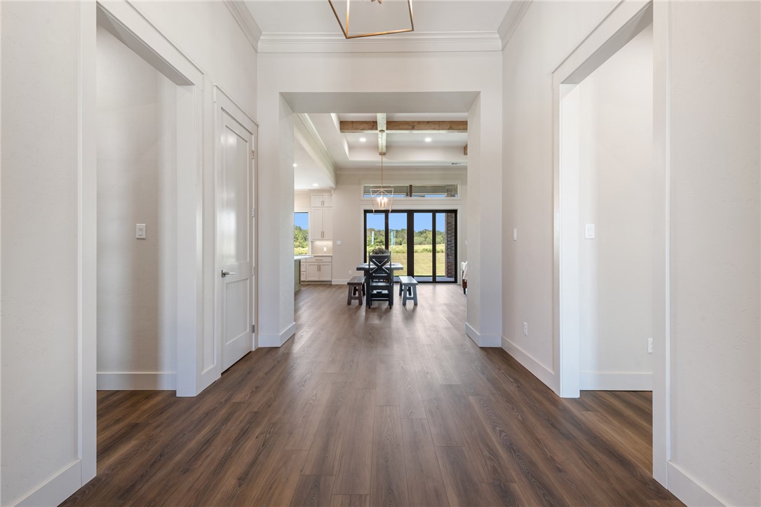 Discover an extraordinary fusion of refined design and rural charm in the desirable community of Cook Crossing. Set on a full acre, this new construction home was designed to connect with its surroundings inside and out. Earthy tones and warm textures set the stage as you step inside, while floor-to-ceiling windows flood the living spaces with natural light and frame peaceful views of the countryside. The open kitchen, anchored by a large island and custom cabinetry, blends beautifully with the living and dining areas, making it easy to gather and entertain. A dedicated office adds flexibility for work or quiet focus, while the private primary suite offers a spa-like retreat with a soaking tub, walk-in shower, and generous closet. Three additional bedrooms and two and a half baths provide plenty of room for family or guests. The expansive covered porch invites you to slow down and enjoy the quiet surroundings, morning coffee, evening sunsets, and everything in between. In a community known for its beauty and craftsmanship, this new home captures the best of both worlds: timeless design and the tranquility of rural living.