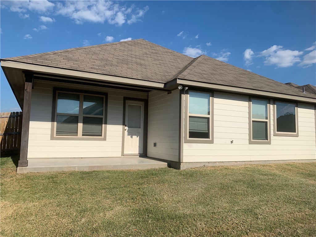 4 bed, 2 bath home featuring kitchen granite countertops, stainless steel appliances, large stainless sink, and refrigerator included. Spacious primary suite offers a soaking tub and separate shower with extra tall shower head. Fourth bedroom at the front can serve as a home office or study. Freshly painted interior with wood blinds throughout. Security system in place with exterior camera and video doorbell. Privacy-fenced backyard, garage door openers, and a quiet court street with no outlet. Close proximity to mailboxes and a fishing pond with ducks. Cul-De-Sac at end of street backs up to private farmland for added peace and quiet. Quick commute to College Station via Hwy 6 frontage rd.