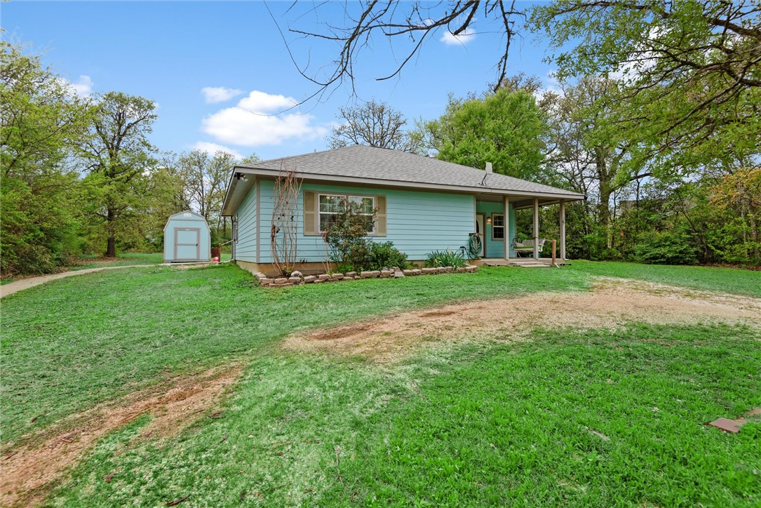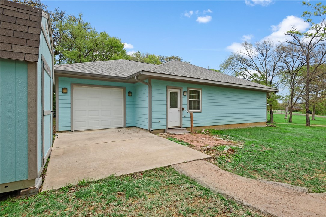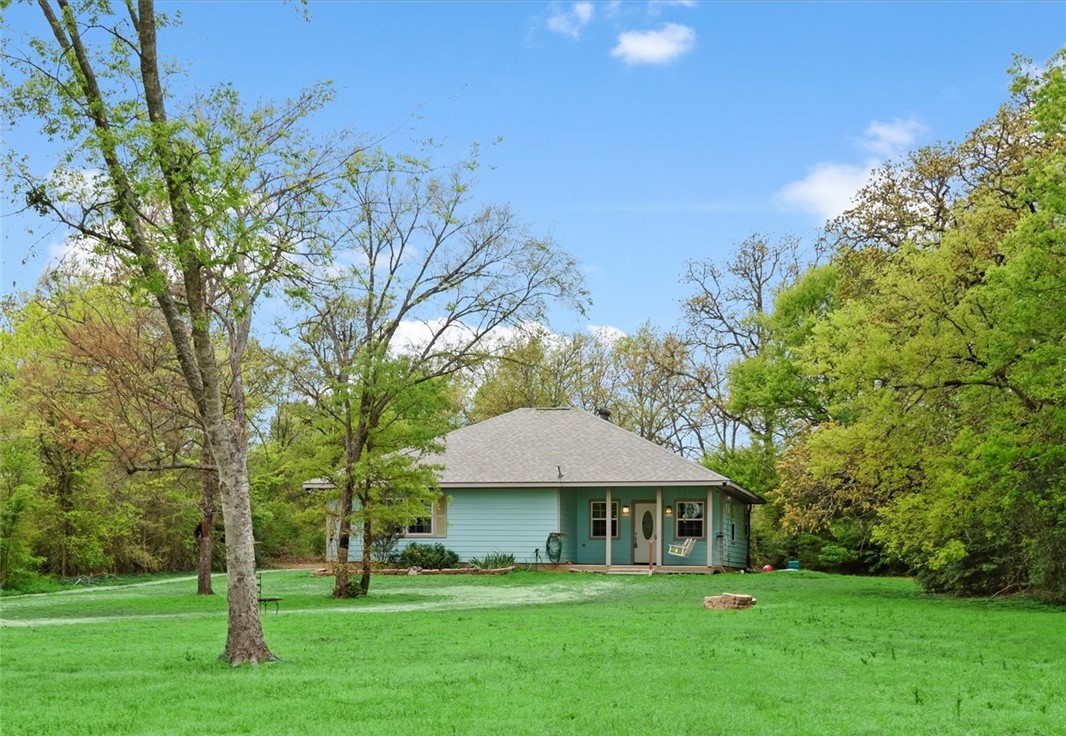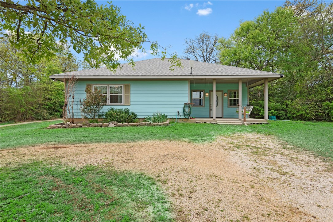 Charming farmhouse, nestled on a peaceful one-acre lot. This cozy 2-bedroom, 1-bathroom home offers 1,326 square feet of space to call your own. Enjoy the inviting front porch, complete with a swing – the perfect spot for relaxing and taking in the views of your tree-filled lot. Inside, the open-concept living, dining, and kitchen areas create a spacious and welcoming atmosphere. The large bathroom doubles as a convenient laundry room and features an ADA-compliant shower and toilet for added comfort. Both bedrooms are thoughtfully designed with extra-large closets, providing ample storage space. The property also includes a one-car garage and an additional outbuilding, that could be used for extra storage or workshop. This is a delightful, 2 bedroom, 1 bathroom home just 15 miles from Bryan, Texas and five miles from Hearne, Texas. *** 8-2025 Foundation repairs completed with transferable warranty*** Home is priced to be sold AS IS