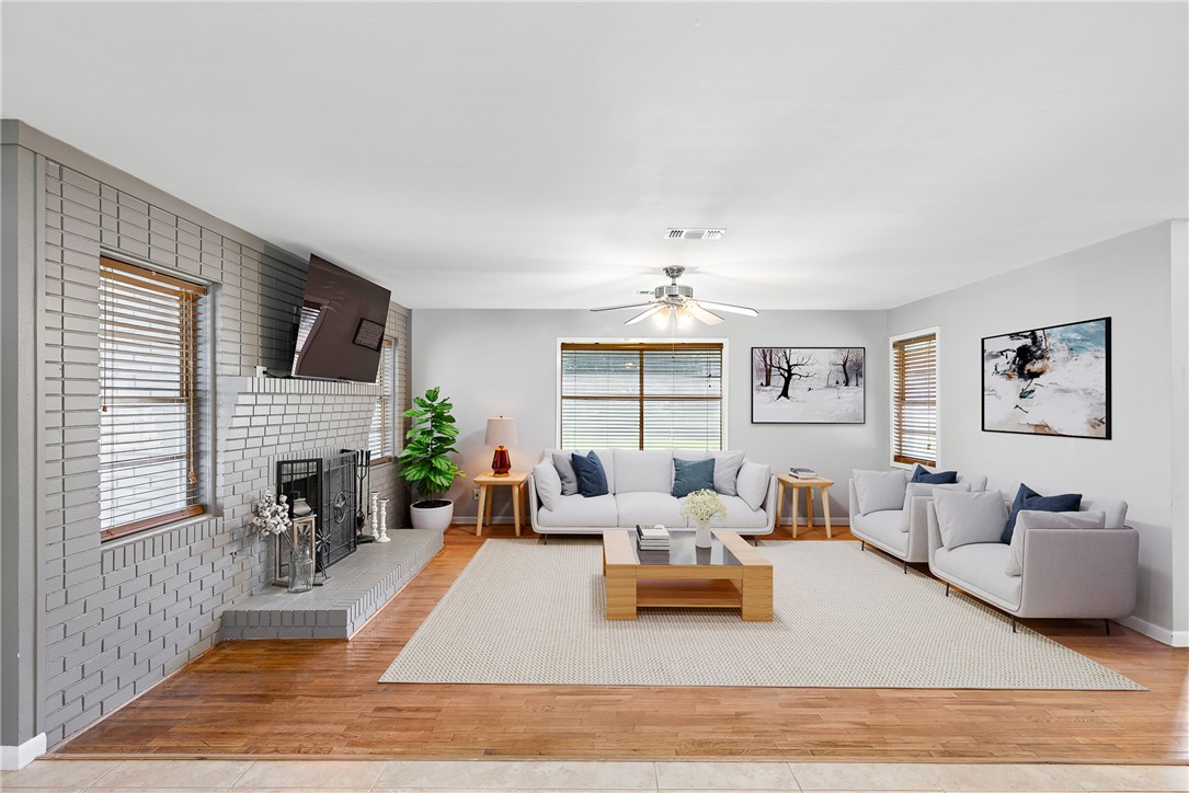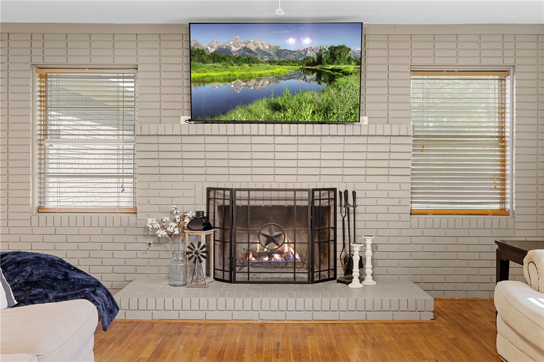 Spacious and beautifully renovated, this home sits on a 1 acre lot tucked away in a well-established neighborhood with mature trees. Step inside to a welcoming living room featuring original hardwood floors and a charming brick fireplace. The kitchen features granite countertops and an eatin bar. Three bedrooms and two bathrooms are located in the main home, with an addition featuring a second living space, bedroom and full bath. This flexible floor plan provides with a private/guest recreational space or multi generational living. The open concept layout seamlessly connect the living, dining, and kitchen areas, with french doors leading out to a covered back patio- ideal for entertaining or relaxing with family and friends. Generous sized backyard makes plenty of room for kids or pets to play, this home truly has it all, make it yours today!