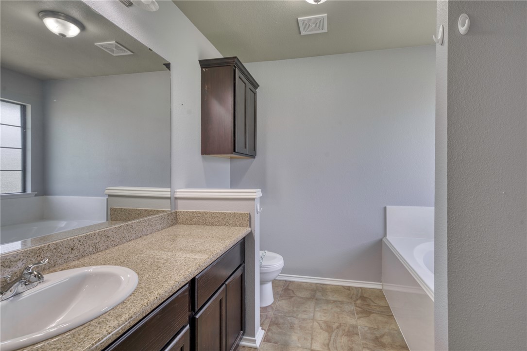 Well maintained home in the Cottage Grove Neighborhood. Sidewalks throughout the neighborhood for those evening or early morning walks. This home has updated solid surface flooring throughout, granite counters in kitchen and bathrooms. The house is wired for a security system by ADT with window & door sensors. Owner is not currently enrolled in a security service; tenants are welcome to set this up. Master bedroom is spacious and has a walk-in closet. Primary bath has separate shower & garden tub. Split floorplan and the privacy of a work area I call the flex space between 2nd & 3rd bedrooms that could be used as an office space or activity space for someone who likes crafts. Enjoy time spent outside? The extended patio and cover will make outdoor grilling more fun and a fully fenced in backyard. Straight shot to TAMU so it's an easy commute.