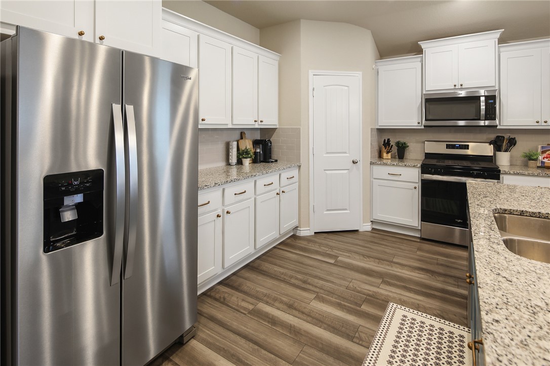 Welcome to Southern Pointe! Built in 2023, this 3-bedroom, 2-bath home offers an open layout with granite counters, a large island, gas range, pantry, and stainless appliances. The split-bedroom design provides privacy, while ceiling fans, blinds, and a garage door opener add everyday convenience.Exterior features include Hardi Plank and stone accents, a covered patio, and an attached two-car garage. Southern Pointe residents enjoy a community pool, dog park, playground, and sports courts—all with easy access to Highway 6, shopping, and dining.