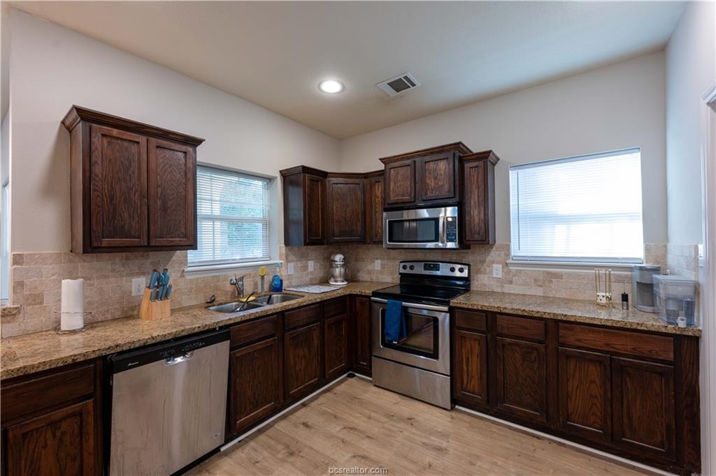 FALL 2026 PRELEASE! 5 bedroom, 5.5 bathroom home. Throughout the house you will find granite countertops, multiple large windows, a back patio with a grass area, and a large balcony! The kitchen, dining, and living areas are all open and inviting creating a nice space for a lot of friends or family. Each bedroom has its own private full bathroom and walk in closet and downstairs there is an additional half bathroom for guests! When you walk upstairs you are immediately invited into another living space that can be used as a game room, office space or an additional living area. Hang out outside on the front patio, back patio, or upstairs balcony, your options are endless! Getting to campus is a breeze, Texas A&M is only 1.3 miles away and the bus route is 1 block away!