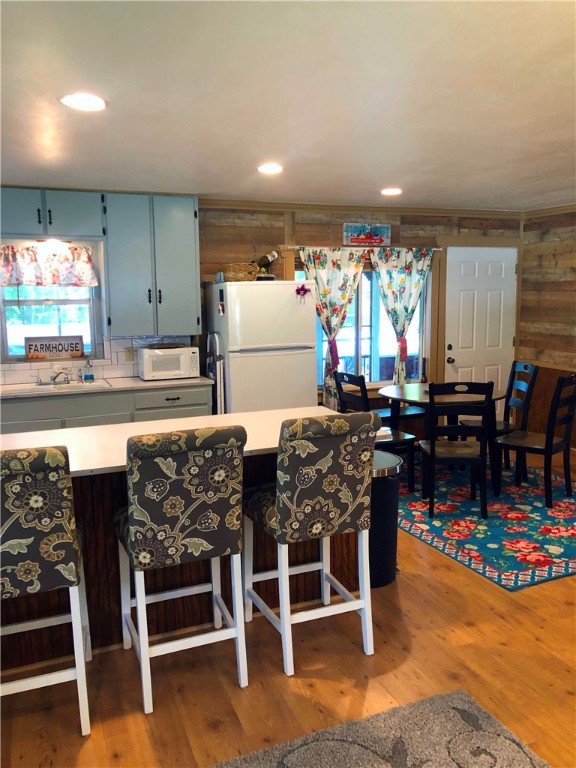 The home features an open floor plan with a spacious living and dining area, a nice kitchen with island seating, and expansive windows that provide abundant natural light and beautiful views of the surrounding trees. Whether you're looking for a weekend getaway, a full-time residence, or an investment property, this home offers flexible possibilities.