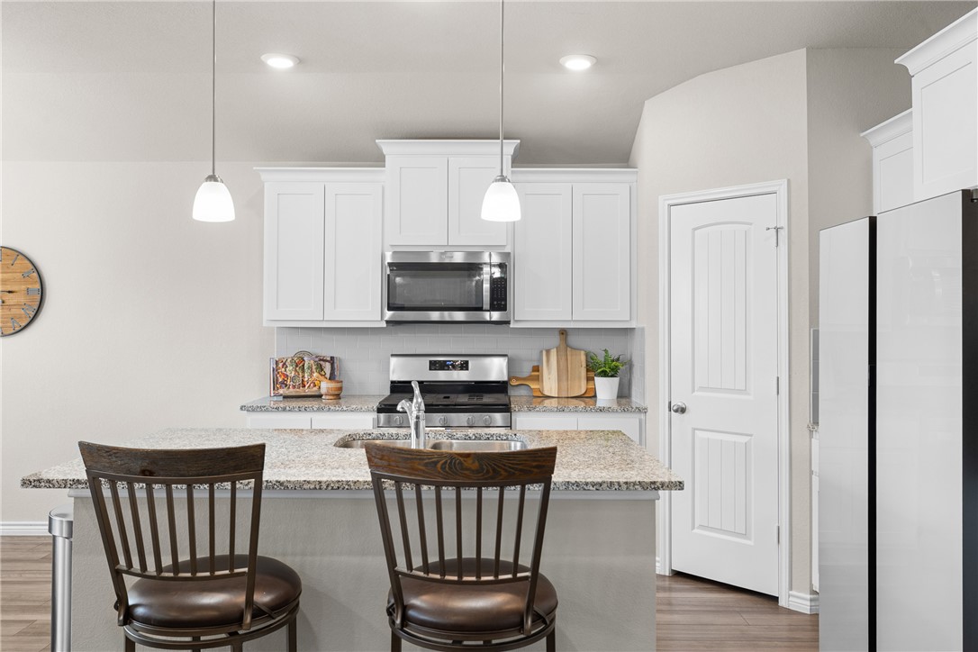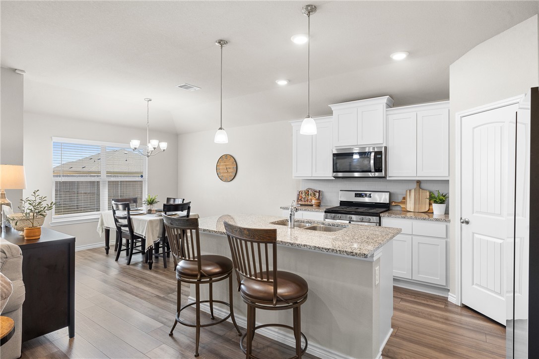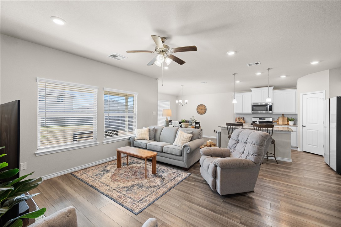 Step inside to find an inviting open-concept layout featuring a spacious living area filled with natural light. The kitchen boasts quartz countertops, stainless steel appliances, tile backsplash and a large island and open to the dining & living room. In addition, the refrigerator, washer & dryer are included—making it truly move-in ready! The primary suite offers a peaceful retreat with a private bath and generous closet space, while two additional bedrooms provide flexibility for family, guests, or a home office.