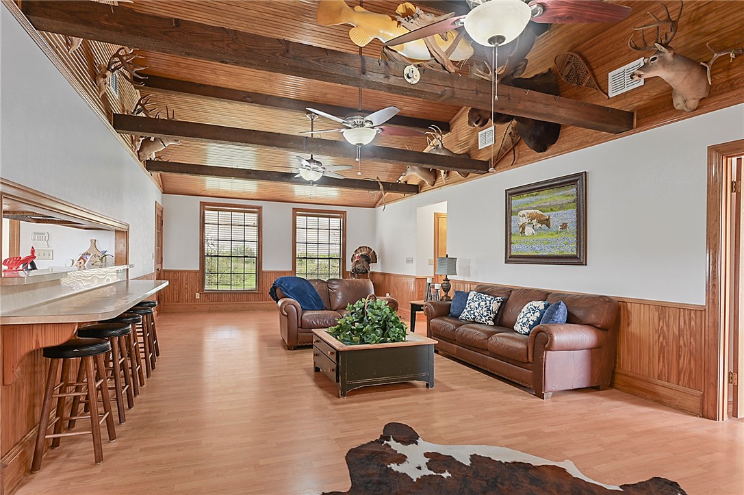 Barndominium home with the best of both worlds, A house above and stalls below, 3 car carport that you can drive through the full barn or there is enough space to make the house larger and take out the stall. There is so much potential, You are just minutes from the Aggieland expressway for easy access off and on, But still far enough away to have piece and quite, (ADDITIONAL 10 ACRES IS ALSO FOR SALE) The property is fenced and crossed fenced, There is a barn 60x80 with a guest house with a 1 bed- 1 bath and easily to add on, there is a pond on each tract of the property. There are 5 Stall with a dirt floor, 3 foaling stalls and 2 regular stalls, With water and electric Tac room and plumber for another bath, The property has cattle pen, Well house. 3 car carport that you can drive through the full Bardominium, RV Hook ups /parking behind the shop with Elec, AG Exp. Additional 10 Acres for sale MLS# 25002912