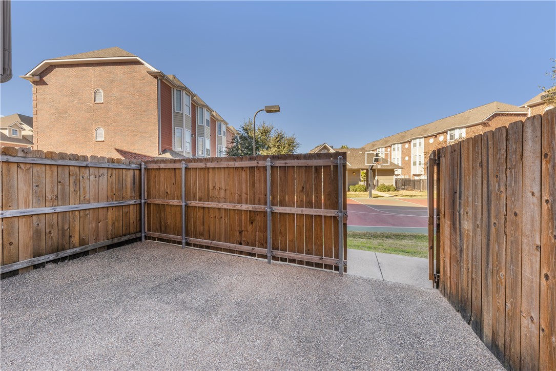 Ready to live in the heart of South College Station and on the Texas A&M bus route? This well-maintained 4-bedroom, 4.5-bathroom condo offers the perfect blend of comfort, convenience, and community. The unit features luxury vinyl wood plank floors in the common areas, a modern kitchen with granite countertops, an eating bar, and ample storage. Upstairs, each bedroom includes lush carpeting, a large walk-in closet, personal thermostats, and private bathrooms with granite countertops and tub/shower combos with a tile patterned surround. A utility room with a washer and dryer, as well as a convenient half bath downstairs for guests, adds to the functionality. Notably, the HVAC system was replaced just two years ago, ensuring energy efficiency and peace of mind. Outside, enjoy designated parking and a private, fenced patio for outdoor relaxation. The community amenities are exceptional, including a sparkling pool with a poolside outdoor kitchen, a movie theatre, a large gym, two private office areas perfect for study groups or remote work, a spacious recreational room, and a basketball court. Whether you're looking for a comfortable home or a smart investment, this property fits the bill. The unit is currently leased until August 1, 2025, with three tenants signed through December 2025, giving you the option to owner-occupy or continue leasing for steady income. Conveniently located near Texas A&M, shopping, dining, and more, this condo offers unparalleled convenience and value.