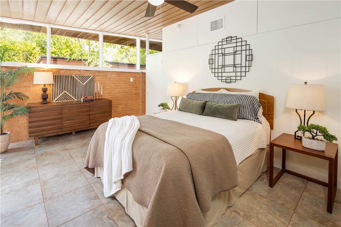Your opportunity to lease and make your home at perhaps the most iconic midcentury modern home in College Station. Designed and built by famed architect William Caudill in 1951 to serve as his personal residence, Caudill went on from his early tenure as an architecture professor at Texas A&M to build a renowned presence in architecture/engineering within the United States and was a pioneer in developing mid century modern architecture through the 1950s and beyond. This 3/2 home with an additional detached guest house is situated on an expansive park like property all within mere blocks of the Texas A&M campus and Kyle Field. Coming off extensive renovations, this home is now available to be leased, unfurnished, as your place to call home (note that some flooring surfaces have been updated from those shown in photos during recent renovations). The detached modern carport area comes complete with an e-charging station. Call for more information or to schedule your private tour while this property is still available to become your next home!