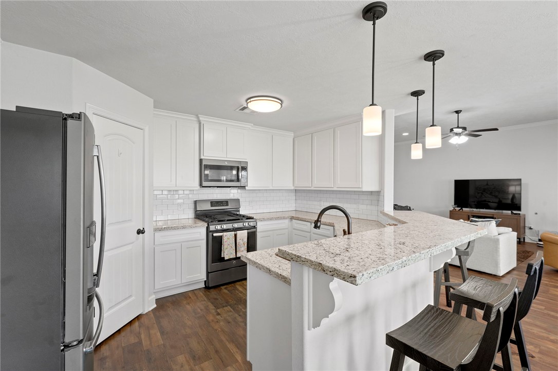 This home feels bright, welcoming, and almost brand new. It’s tucked into a quiet cul-de-sac in south College Station and has the kind of open layout people ask for when they want space and easy living. Inside are four bedrooms and two baths with the primary suite set apart for privacy. The large family room connects naturally to the kitchen and dining area — a comfortable spot to relax or entertain. The kitchen features granite counters, gas cooking, a roomy island, and a walk-in pantry that surprises everyone who steps inside. Step out back to a covered patio and fully fenced yard that’s ready for pets, grilling, or a little garden. The community offers a pool, playground, and sidewalks for evening strolls, and it’s just a short drive to shopping, restaurants, and major roads for an easy commute. This house blends style, function, and location — a great fit for anyone looking for a spacious, like-new home with a big pantry, separate primary suite, and open living area in College Station.