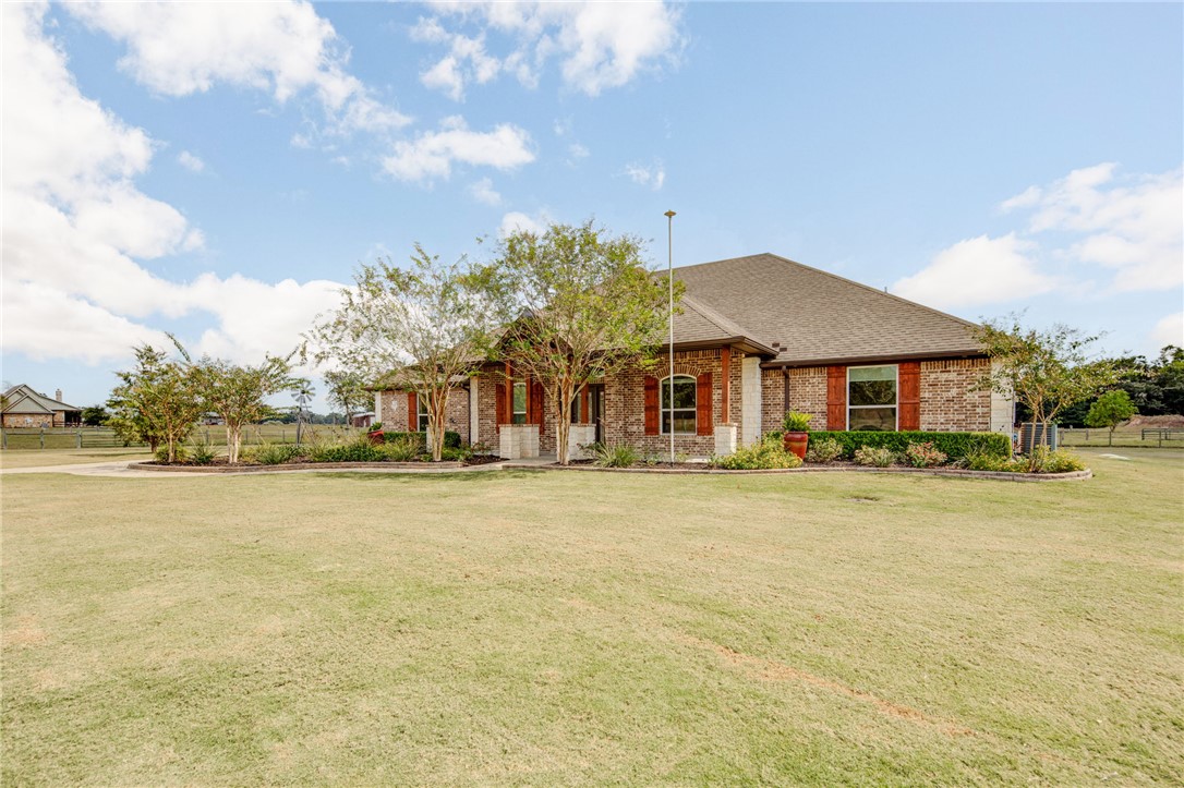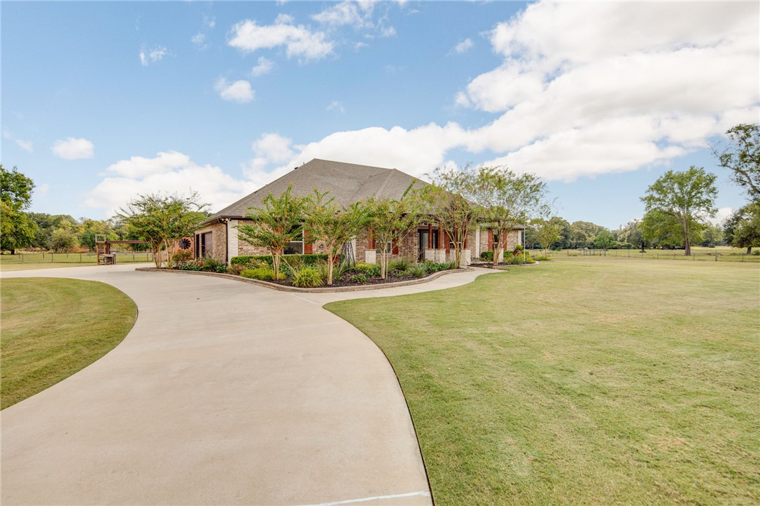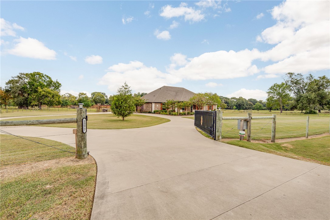 Situated in the quiet enclave at Fawn Lake, this impeccably maintained residence is situated on 10.24 pristinely manicured acres. As you approached the property pass through an automatic gate and into the beautifully landscaped circle drive leading up to the homesite and three car garage. Enter the foyer and to the left you have the owner's study. Continuing into the heart of the home you find the kitchen/dining/living great room with sweeping views of the rear acreage. This kitchen has custom site-built cabinetry, stainless appliances, granite counter with chiseled edge, and central eat-in island. The dining room is large enough for 8-10 seating. The oversized living area has an Austin Stone fireplace surround with cedar mantle and beamed ceiling. The primary suite is positioned at the rear of the home with a massive en-suite bath hosting double vanities, doorless walk-in shower, and soaking tub. Three well-proportioned guest rooms and 2.5 additional baths are perfect for family or company. Attic is foam insulated with ample storage. Dedicated raised bed garden area and rainwater harvesting tank. Property has a fenced backyard, multiple cross fenced pastures, pond with dock, and a rear seasonal creek creating the perfect treed buffer to the site. Small storage building on slab plus a metal frame/covered awning for equipment. Ag tax exemption in place. Do not miss this rare listing located 10 minutes from the center of Bryan/College Station!