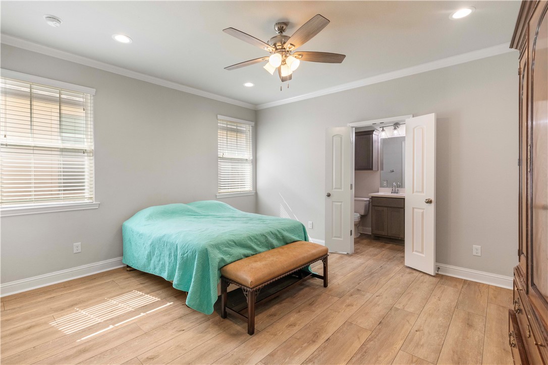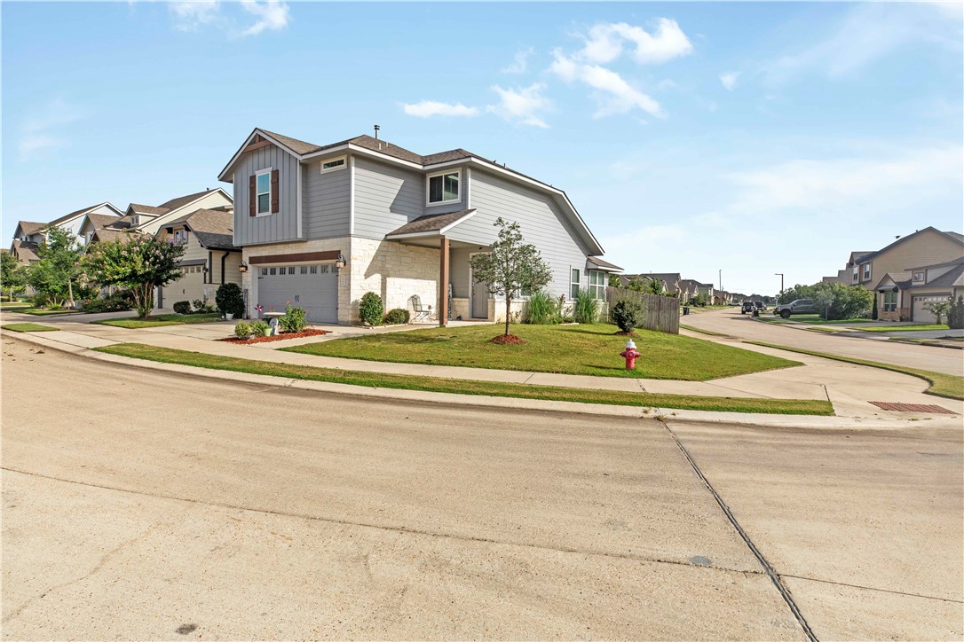 Corner lot, game room, half bath downstairs, and a tankless water heater - this Midtown Reserve home has all the upgrades you didn’t think you'd find in this neighborhood! Not your typical builder home, this 3 bedroom, 2.5 bath beauty was thoughtfully designed for comfort and functionality. Step inside to high-end vinyl plank flooring and an open-concept floorplan with soaring barrel-vault ceilings. The kitchen is the heart of the home, featuring a massive island with sink, stainless steel appliances, a gas range, dry bar, and a walk-in pantry big enough for serious Costco runs. The oversized downstairs primary suite includes a walk-in closet, and a secondary closet, plus a spacious bath with dual sinks. Upstairs, the airy game room overlooks the main living area, flanked by two generously sized bedrooms each with large closets, and a full bath with double sinks. Bonus points for the tankless water heater (an uncommon upgrade here), extended back patio, and garden beds already planted with Okra and Watermelon ready to pick! Situated on a corner lot, this home offers extra space and a little more breathing room than most Midtown homes. Just minutes to shopping, restaurants, and Texas A&M, come home to 1311 McQueeny and make everyday living feel like an upgrade.