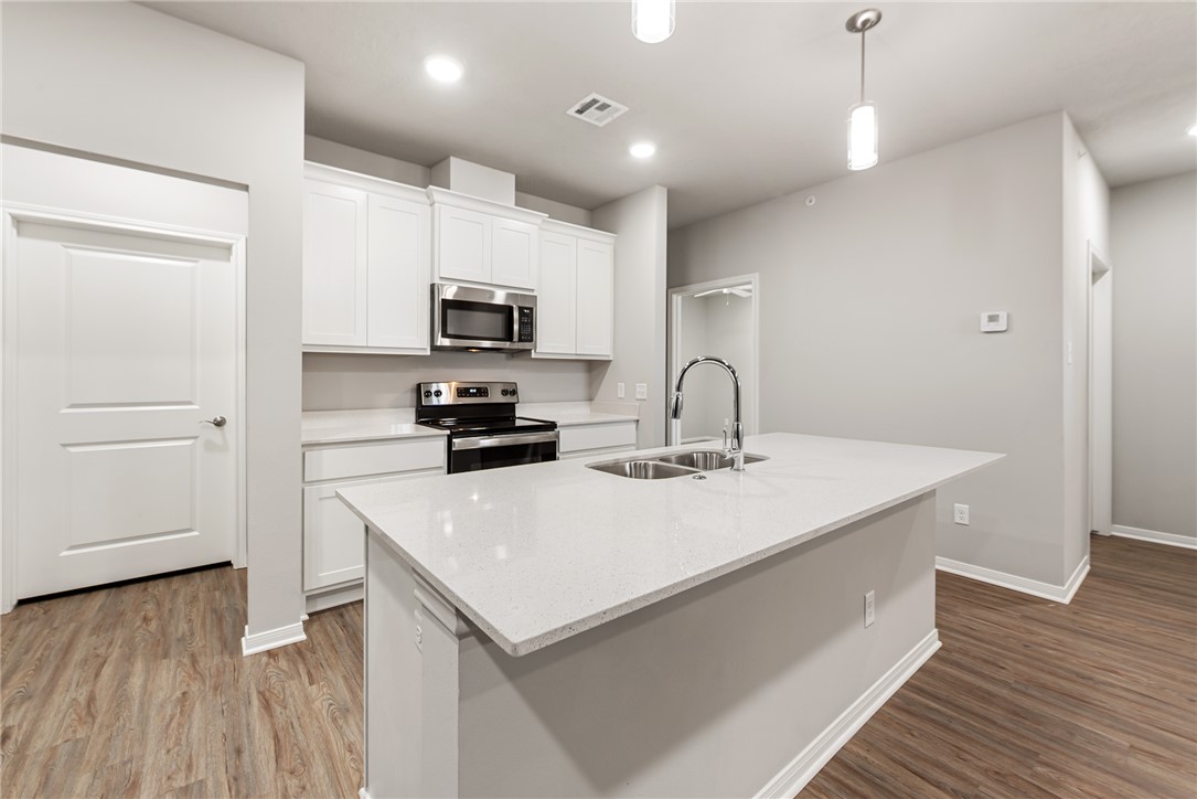 Adorable 2 bedroom 2 bath condo located in the new Academy condos complex in Bryan! This condo features a large open living room, gorgeous kitchen with large island, quartz countertops, like new appliances and plenty of cabinet and counter space. The primary bedroom suite features a large bedroom and ensuite bathroom with double vanities and tile shower! The additional bedroom is great size with its own bathroom! A Fenced balcony area! This complex has a commnity pool and is located close to Downtown Bryan and Blinn College and only approximately 15 minutes to Texas A&M University!