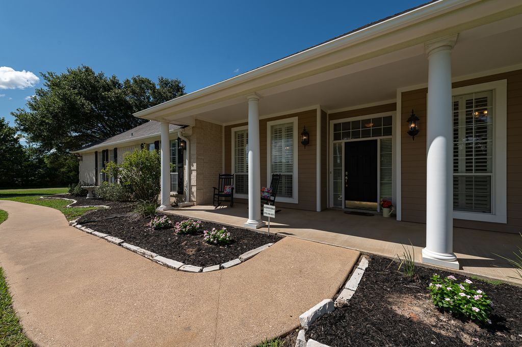 Outside, the beauty of this home continues with all-brick construction and a large front porch adorned with vibrant flowerbeds. The covered back porch is ideal for outdoor relaxation, and the expansive fenced-in backyard provides ample space for recreation, horses or potential landscape enhancements. This estate offers a harmonious blend of sophistication, space, and serenity in the sought-after south College Station community.