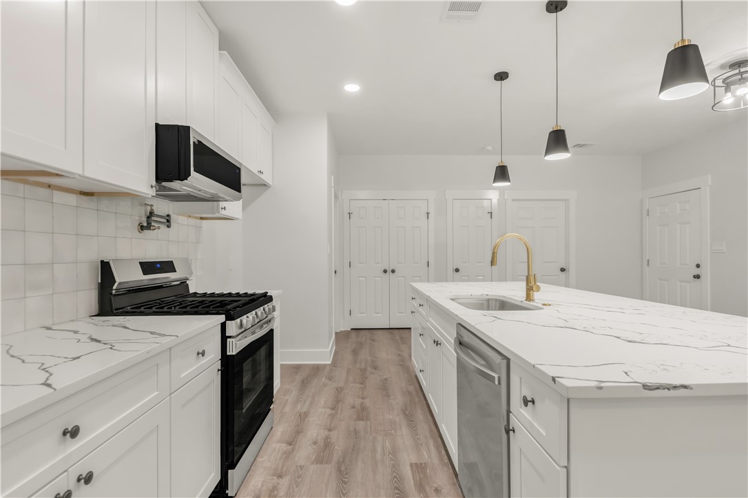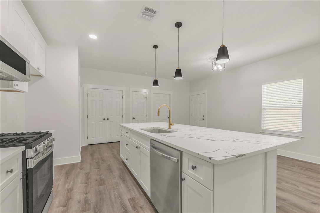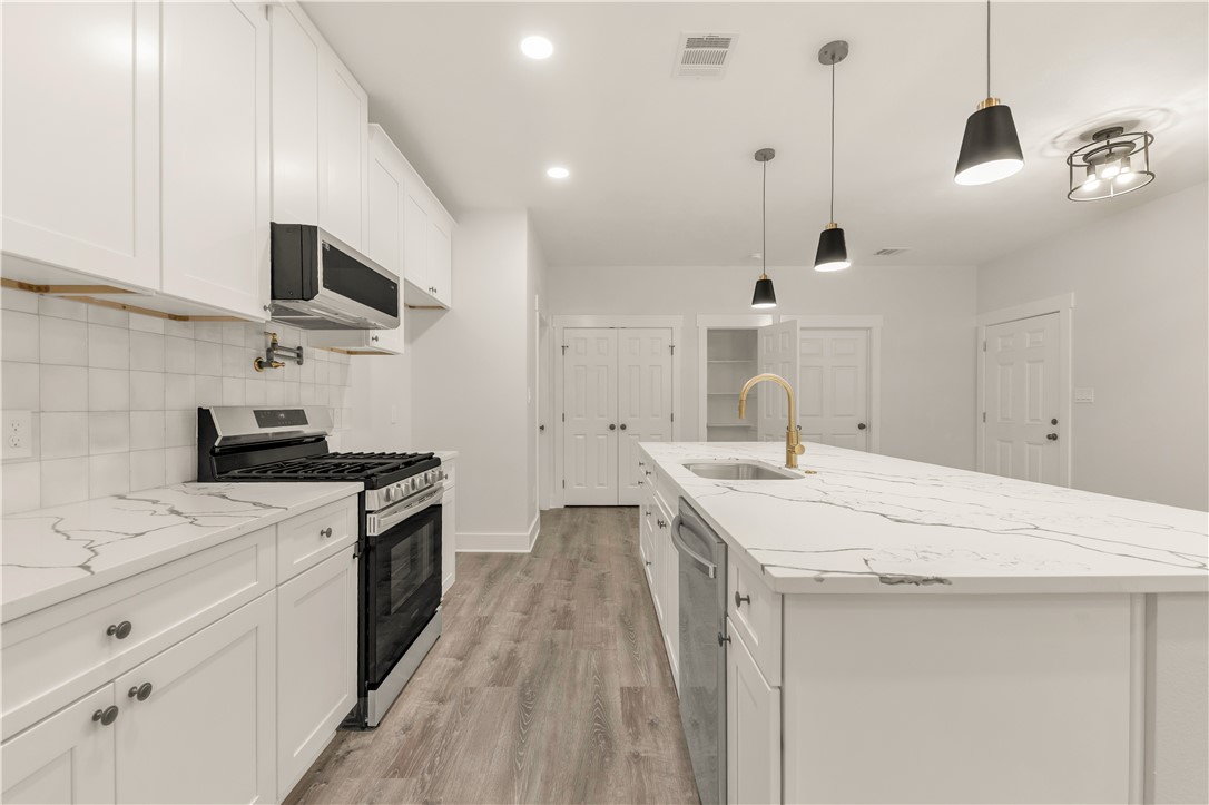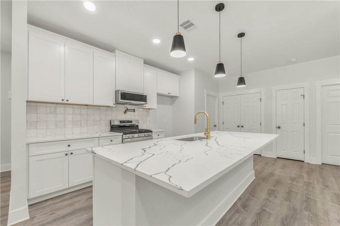 MOVE-IN READY! Introducing this stunning New Construction home in Bryan, TX: Nestled in a prime central location with no HOA - just minutes from TAMU RELLIS Campus and TAMU Health Science Center, this exquisite 3-bedroom, 2-bath PLUS flex room/office home embodies modern elegance and convenience. Step inside to discover an inviting open concept that seamlessly connects the living, dining, and kitchen areas, ideal for both entertaining and everyday living. The kitchen is a chef's dream with gas stove, featuring quartz countertops, and ample storage space, ensuring culinary creativity is always at your fingertips. Enjoy the comfort of Luxury Vinyl Plank (LVP) flooring throughout the common areas, paired with the warmth of carpeted bedrooms, all enhanced by ceiling fans that provide optimal climate control. The versatile office/flex room offers the perfect space for work, play, or relaxation. Attention to detail is evident in the bathrooms, where you'll find fully tiled bath/shower combos and a luxurious fully tiled shower in the primary bathroom, delivering a spa-like retreat within your own home. The charming front porch invites you to unwind, while the oversized driveway offers abundant parking options. Schedule a private showing appointment today and take the first step toward making this exquisite home your own.