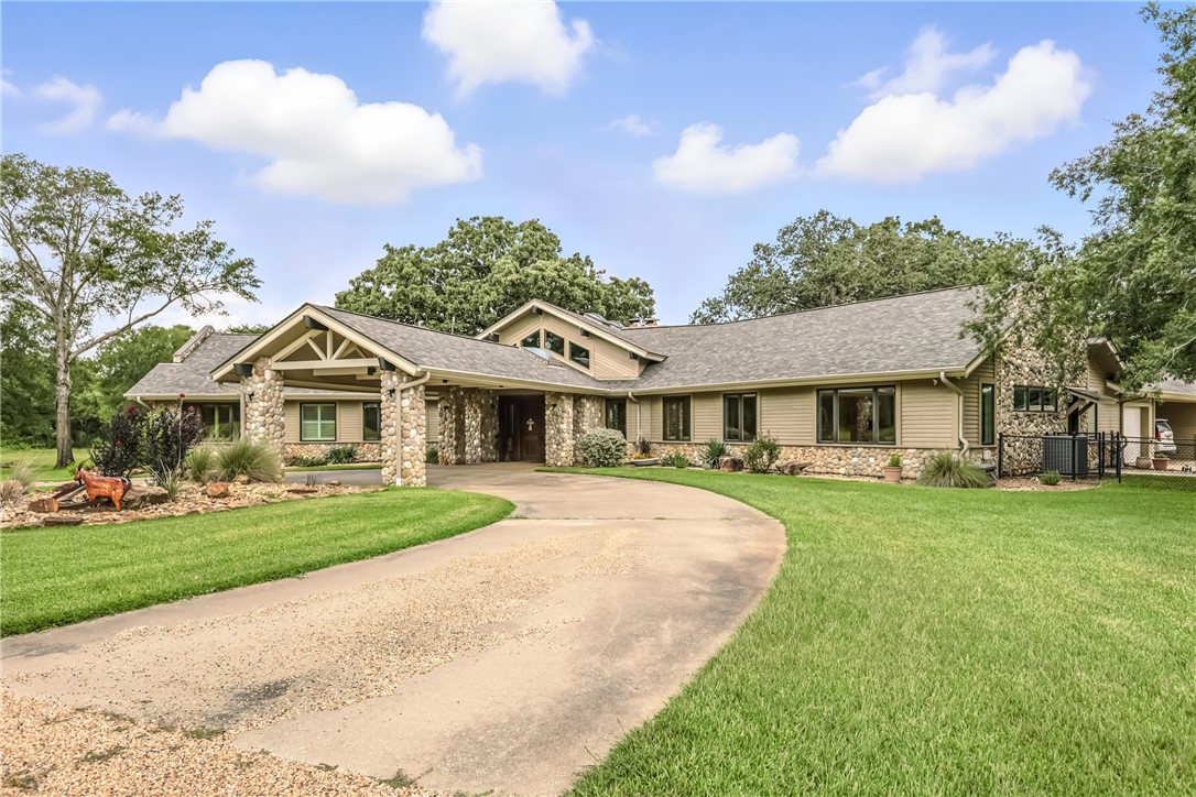 Welcome to River Rock Ranch, a stunning 75.27-acre estate offering luxury, comfort, and serene country setting minutes from Aggieland. The beautifully maintained main house features 3 spacious bedrooms and 3.5 baths, plus an attached apartment with a recently updated kitchen & large bathroom —ideal for guests or multi-generational living. The heart of the home is a grand living room with vaulted ceilings, exposed wooden beams, and a gorgeous rock fireplace that serves as a striking centerpiece. Surrounded by mature trees, the property includes a sparkling pool, a pool house, a workshop, extensive decking, and a custom rock smoker/BBQ area perfect for entertaining. Additional amenities include a barn with tack room, two water wells, a paved driveway, and two scenic ponds. The renovated guest house offers 2 spacious bedrooms and a full kitchen w/ granite countertops & SS appliances. This ranch is ideal for outdoor enthusiasts, horses, & benefits from a wildlife management exemption.