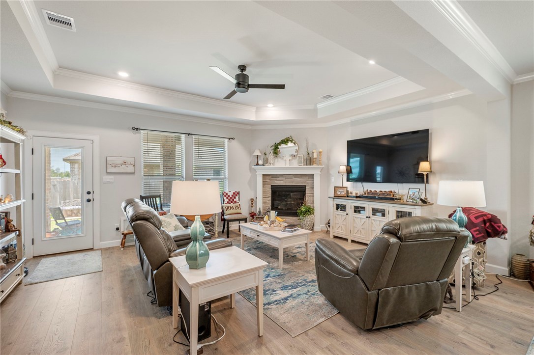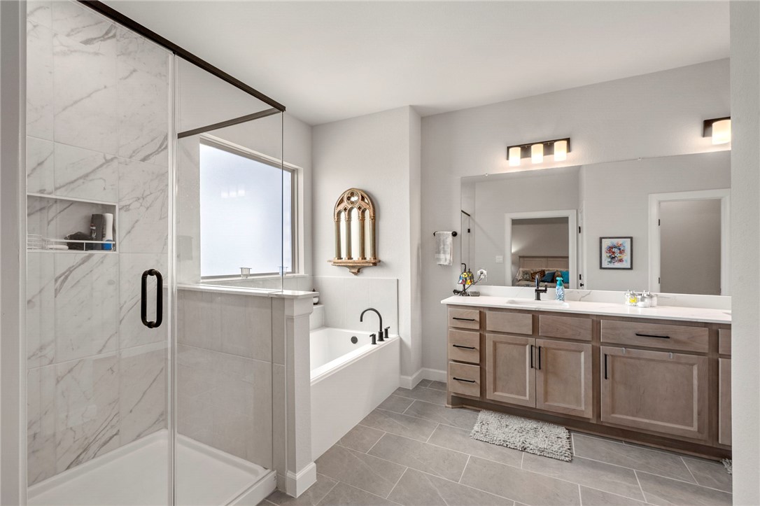 Beautiful 1-year-old home in the highly desirable Wellborn Settlement community! This 4-bedroom, 3-bath residence features an open-concept layout with spacious living and dining areas, plus a chef’s kitchen with granite countertops, walk-in pantry, and abundant cabinetry. Numerous upgrades were added at purchase, including custom blinds, cabinet hardware, gutters, and backyard lighting. The split floor plan offers privacy, with a serene primary suite showcasing designer ceilings, warm tones, and a spa-like bath with walk-in shower, deep soaking tub, dual vanities, private water closet, and large his-and-hers walk-in closets. Secondary bedrooms are generously sized with ample closet space—Great for hobbies, or home offices. Oversized windows fill the home with natural light, creating a bright and inviting atmosphere. Outdoors, enjoy a covered back patio and freshly landscaped yard with new trees and flower beds. This home blends comfort, style, and convenience—ready for move-in!