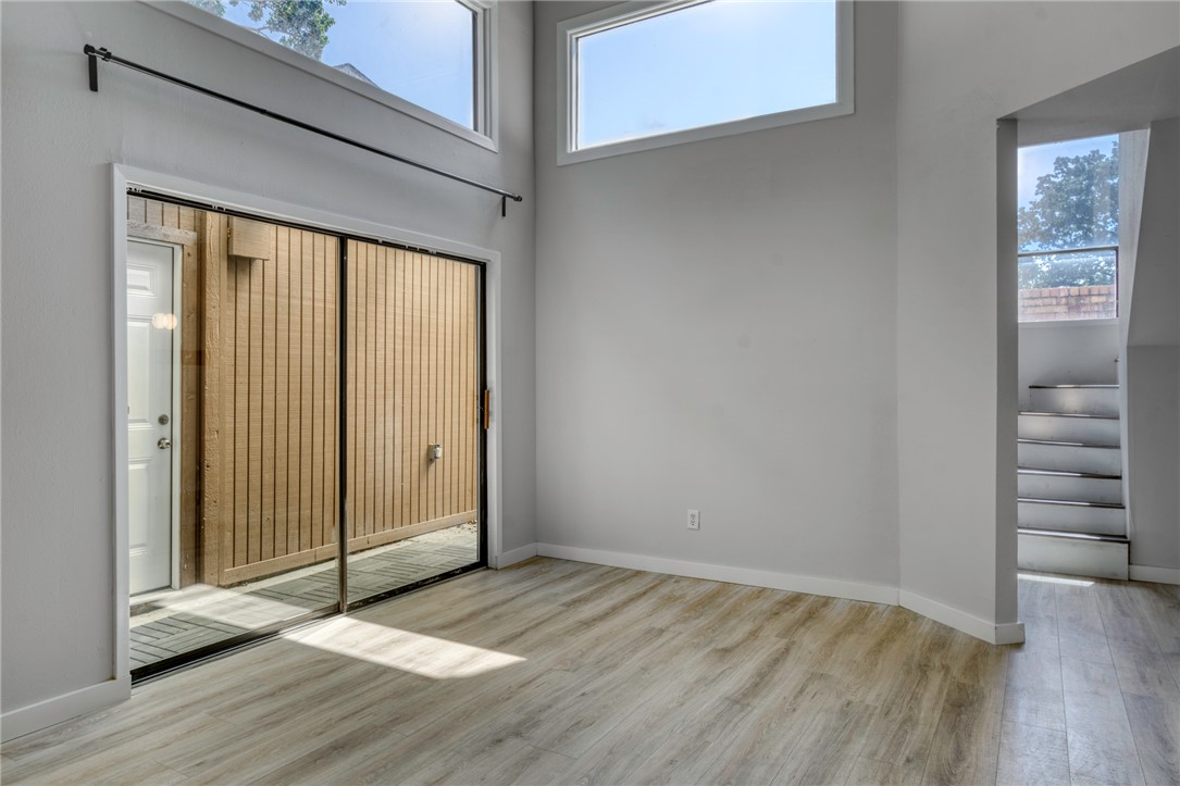 As you enter, you’re greeted by a bright, open living area accented by warm finishes and modern touches. The updated kitchen features stainless steel appliances, new countertops, and custom cabinetry, ideal for both casual meals and entertaining.