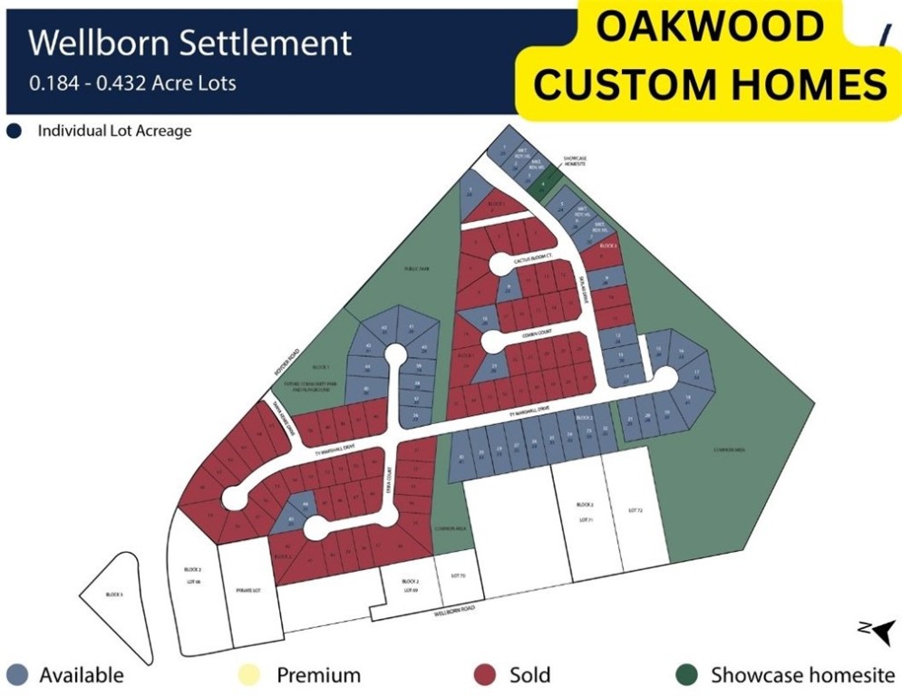 WELCOME TO WELLBORN SETTLEMENT, THE HOME OF THE HEARTLAND LIFESTYLE by Oakwood Custom Homes Group. This exceptional .23-acre homesite offers the ideal canvas for your "Dream Home." Located in an amazing and sought-after location just a few miles to Texas A&M, this open land presents a unique opportunity to build to suit your vision. With ample space and flexibility, you can design and construct a home tailored to your specific needs and preferences 2,200 sf min required. Embrace the "Heartland Lifestyle" in this vibrant community, known for its friendly atmosphere and charming ambiance. Whether you're envisioning a cozy family home or a modern retreat, this lot provides the ideal foundation for your next chapter. Enjoy all that this wonderful neighborhood has to offer. Don't miss this chance to become part of the Wellborn Settlement community and experience the Heartland Lifestyle. Contact an agent today for more information and to schedule a visit to this beautiful property!!!! BUILD TO SUIT with Oakwood Custom Homes Group. With over 48 years in the new home construction business we are the right choice for you! **Build with Oakwood Custom Homes and receive 10K off the price of the Homesite/Lot**