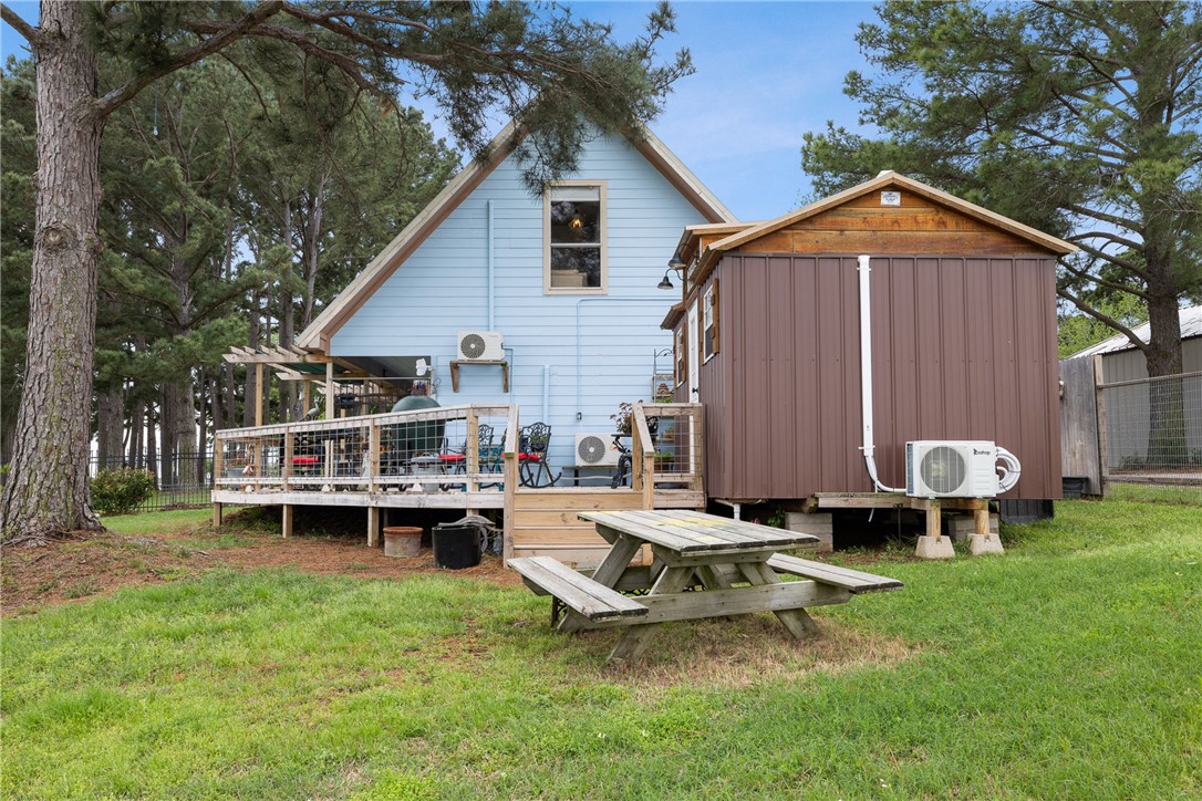 on the large deck, which connects to a 160 sq ft Bunkie with an extra bedroom, half bath,
