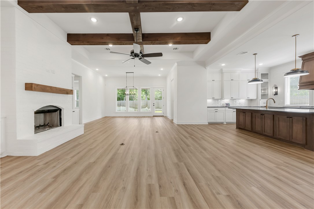 Welcome to this beautiful 4-bed 3.5-bath situated on a corner lot in the heart of Mission Ranch. From the moment you arrive, the front-sweeping, oversized garage—with built-in storage and attic access—sets the tone for smart functionality. Inside, the spacious living room draws you in with its custom fireplace and built-in cabinetry, creating a cozy yet refined atmosphere. The kitchen, designed with both style and efficiency in mind, includes generous cabinet and counter space, large windows for natural light, and an expansive walk-in pantry. The primary suite is a true getaway, featuring a spa-like bath with a deep soaking tub and an oversized walk-in shower equipped with dual shower heads. Connected for convenience, the laundry room includes a sink and direct access to the owner’s closet. Additional highlights include a front-facing home office with views of the porch and lawn, a well-planned split-bedroom layout, and a covered back porch for hosting or unwinding. Every detail in this home was carefully considered for comfortable, elevated living.