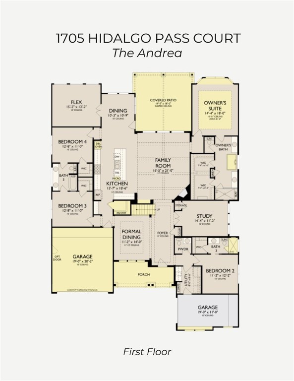 The Andrea offers an impressive amount of space, thoughtfully designed for your comfort, with luxurious finishes throughout. The expansive kitchen serves as the heart of the home, flowing smoothly into the family room and dining area. The owner’s suite, located next to a large covered patio, features a spacious ensuite bath and two generous walk-in closets. The bay windows overlooking the backyard bathe the room in natural light, offering you a peaceful retreat.