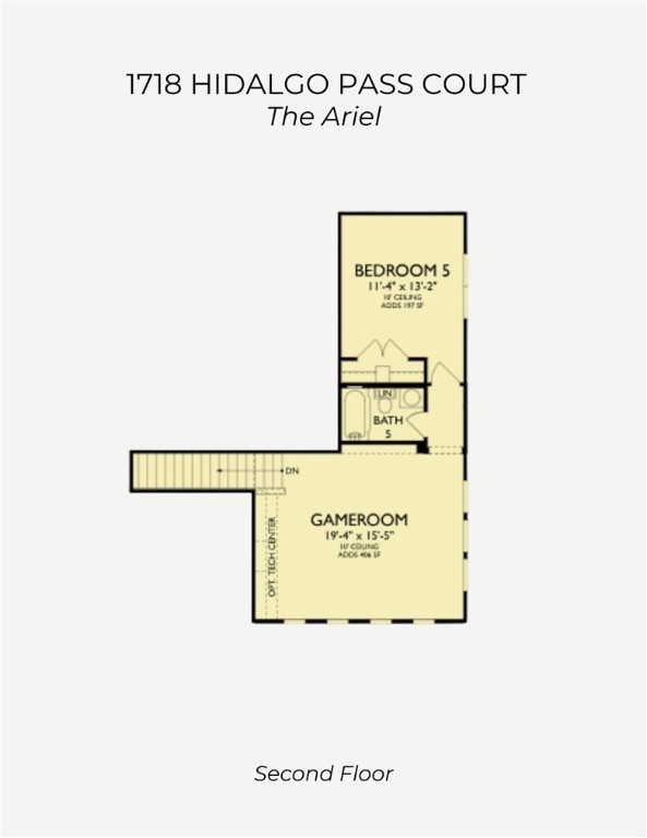 The Ariel’s open-concept is designed beautifully, with the huge kitchen opening on to the family room and dining area. Bedrooms 3 and 4 each have their own full bath, and the second story includes a game room and 5th bedroom and full bath.