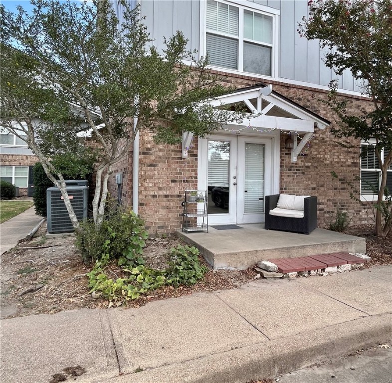 Hard to find first floor, one story, end unit condo at the The Woodlands of CS! Parking right at your back door with courtyard at the front door! Light and bright kitchen with eating bar and a full array of appliances including the refrigerator, washer and dryer. Large open dining and living space has added windows being an end unit. Two spacious bedrooms each have their own ensuite bathrooms. Community amenities include resort style pool, dog park, hammock garden, 24 hour fitness center, sports courts etc.