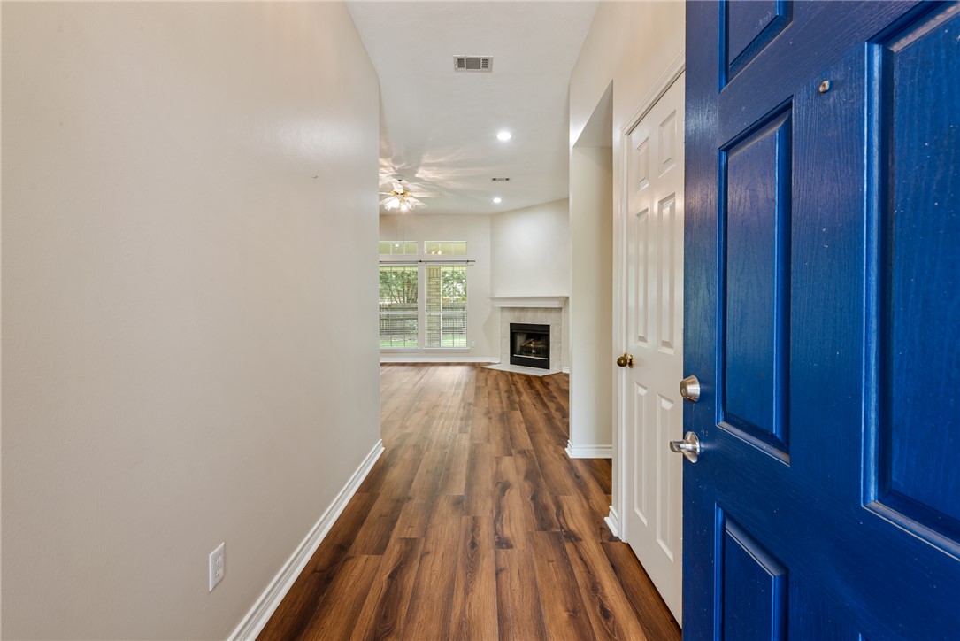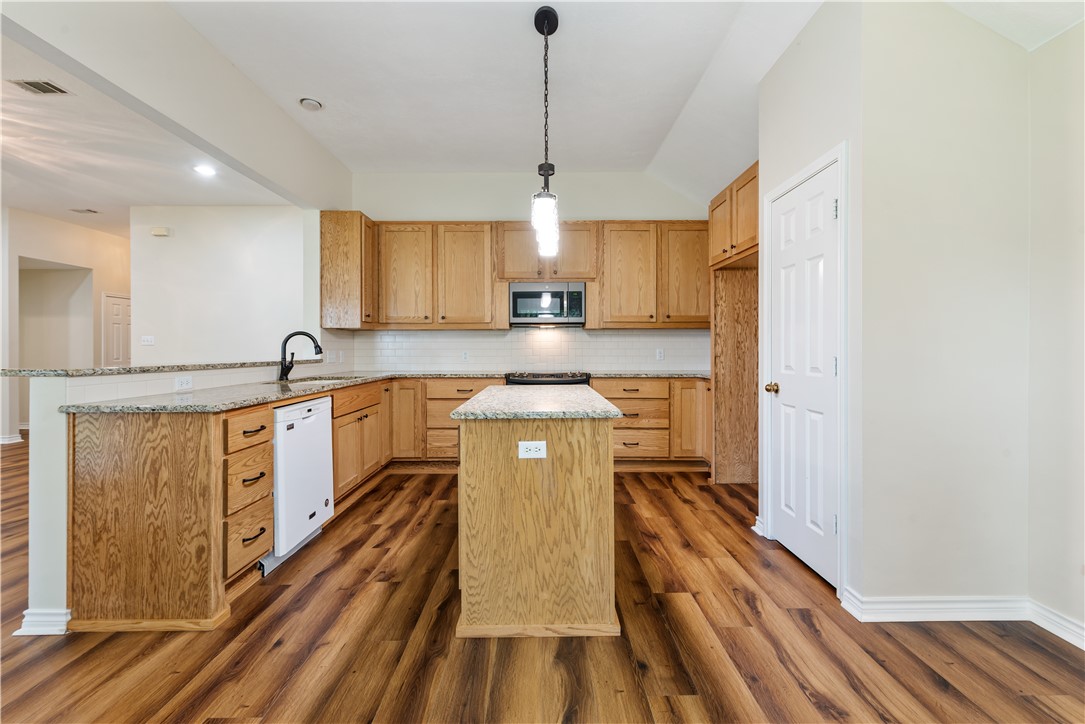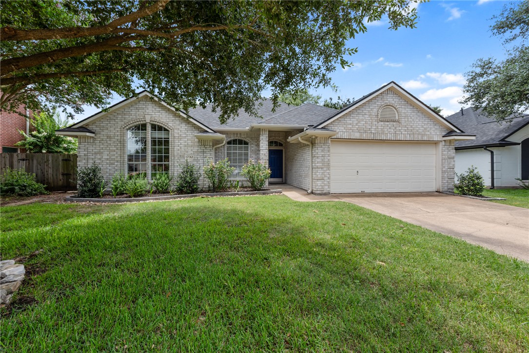 This charming 3-bedroom, 2-bath home in College Station makes a strong first impression — starting with the beautifully crafted custom kitchen cabinetry that sets the tone for thoughtful design throughout the home. Step inside to find updated wood-look flooring, neutral paint, and a bright, open layout filled with natural light. The spacious living room features a cozy fireplace and flows easily into the dining area, where large windows overlook the peaceful backyard. The kitchen is a standout, offering granite countertops, a center island, modern appliances, and those eye-catching custom cabinets — making both daily meals and hosting feel effortless. The split floor plan provides added privacy, with a primary suite that includes a large walk-in closet, soaking tub, separate shower, and dual vanities. Two additional bedrooms and a full bath complete the interior. Out back, enjoy a covered patio, mature shade trees, a storage shed, and a fully fenced yard with plenty of space for pets, play, or relaxing outdoors. This well-cared-for home is conveniently located near schools, parks, and shopping — and it's ready for its next owner to move right in.