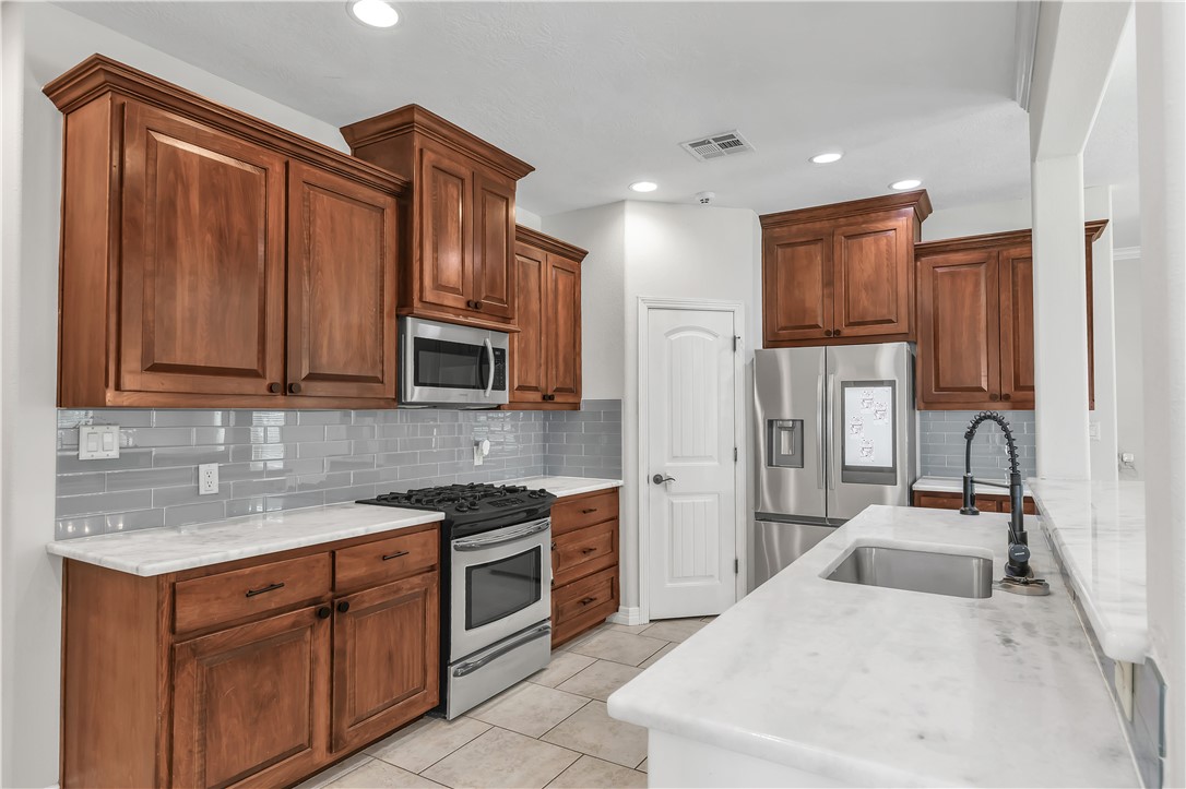 Discover your serene haven with this exquisite 3-bedroom, 2.5-bathroom residence, perfectly situated in the heart of south College Station. With relaxed design elements and a generous floor plan, this property is crafted for both comfort and style. Step inside to experience the warmth of an open living space accentuated by natural light flowing through expansive windows. The gourmet kitchen is a chef’s delight, featuring granite countertops, glass tiled backsplash, stainless appliances, and a convenient breakfast bar, ideal for casual dining and entertaining. A dedicated dining area complements the kitchen space, offering a formal setting for more intimate meals. The downstairs primary suite is a private retreat, complete with a spacious walk-in closet and a en-suite bath featuring a soaking tub and a separate shower. Two upstairs bedrooms provide ample space for guests or home office needs. Outside, the property shines with small backyard, perfect for relaxation or outdoor gatherings. The covered patio offers a shady spot to savor your morning coffee or host weekend barbecues. An HOA maintained front yard and flower beds add to the easy maintenance of this home. Completing this package is a sizable 2 car garage, ensuring secure parking. In a location that combines convenience with tranquility, this property offers easy access to local amenities and top-rated schools making it an ideal choice for discerning buyers. Don’t miss the opportunity to own this personal retreat.