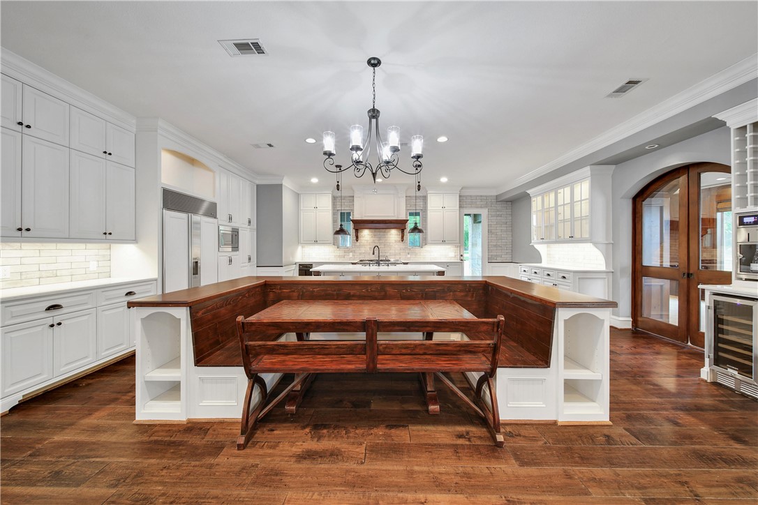 - Appliances: BuiltInGasOven,DoubleOven,Dishwasher,Disposal,GasRange,Microwave,WineCooler,TanklessWaterHeater