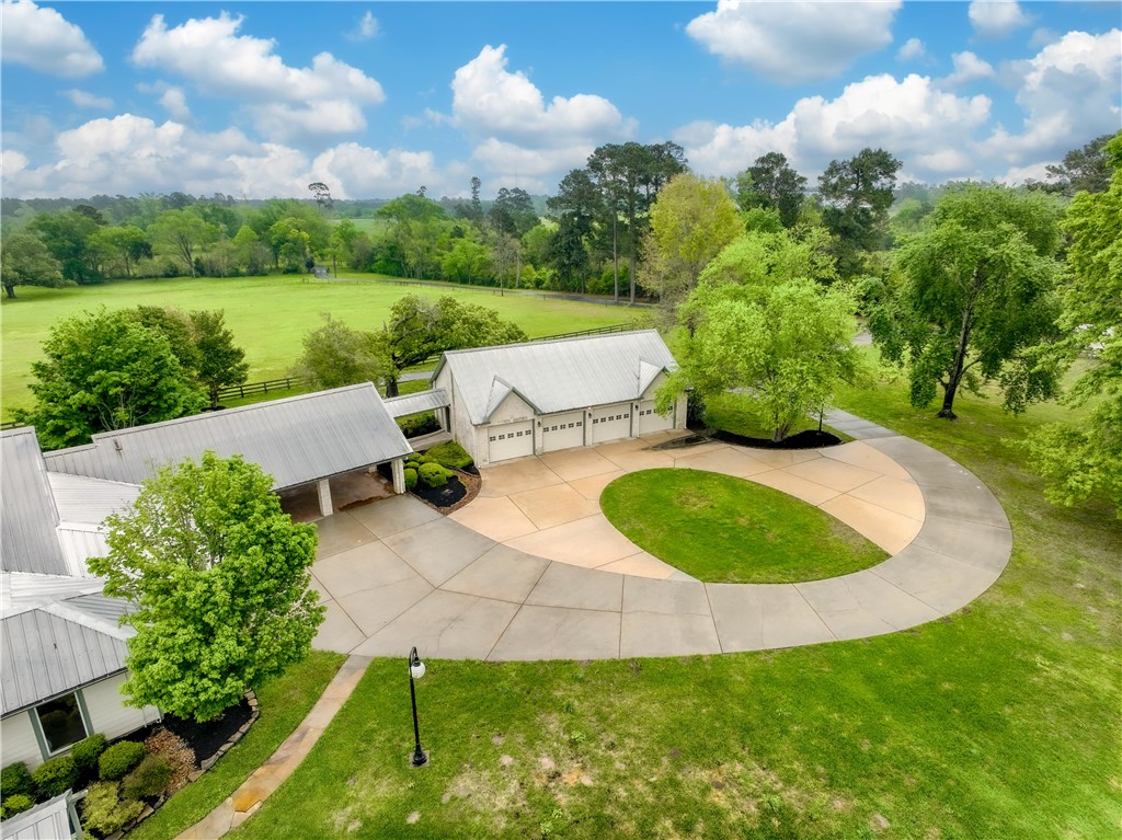 Nestled on 47± acres of rolling hills, this exceptional ranch offers the perfect blend of comfort, functionality, and resort-style living in a peaceful country setting. A striking architectural entry with iron fencing, stone columns, and a paved driveway welcomes you to a beautifully designed estate featuring a main house, guest house, and pool house—all centered around a sparkling pool and spa. The single-story main home showcases an open-concept layout that seamlessly connects the island kitchen, breakfast and dining areas, home office, and multiple living spaces. The private primary suite includes a cozy sitting room with a fireplace, a luxurious ensuite bath with double sinks, a walk-in frameless shower, and a spacious custom closet. The charming guest house features built-in bunkbeds and a full bath, while the pool house adds additional space ideal for entertaining. Outdoor living is elevated with expansive porches, a terraced patio, outdoor fireplaces, a full kitchen, a 4-car air-conditioned garage, and a 4-car carport. Designed for both lifestyle and practicality, the property also includes a barn, workshop, equipment shed, RV building, cattle pens, fenced pastures, and peaceful ponds—fully equipped and ready for your ideal rustic retreat.