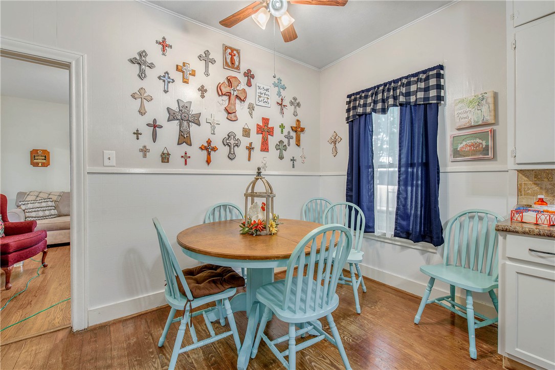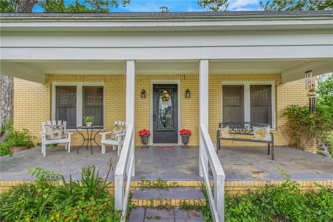 Charming 1930s Home on 1 Acre in Caldwell, TX – Residential or Commercial Potential! Step back in time and enjoy the charm of this beautifully preserved 1930s brick home, nestled under towering shade trees on a full acre in the heart of Caldwell. Offering 2 bedrooms, 1 bathroom, and 1,088 square feet of heated living space, this property blends vintage character with everyday functionality—ideal for residential living or small business use. From the moment you arrive, you’ll be captivated by the welcoming covered front porch featuring original bead board ceilings and ample space to relax or greet guests. The front door, a stunning original piece, sets the tone for the home's unique character and craftsmanship. Inside, you'll find original hardwood floors that carry the warmth and history of the home through the living areas. The spacious living room quiet, light-filled and inviting, offering the perfect gathering place for family or clients. The kitchen, with large adjacent dining space, showcases original upper cabinetry, adding a nostalgic touch while still offering ample storage and functionality. Outside, the property is surrounded by ranch land and offers a detached garage and the expansive 1-acre lot provides plenty of space for gardening, entertaining, play, or expansion. With flexible use potential, this well-preserved gem is ready to be your cozy home, office space, or a unique blend of both—all just minutes from downtown Caldwell.