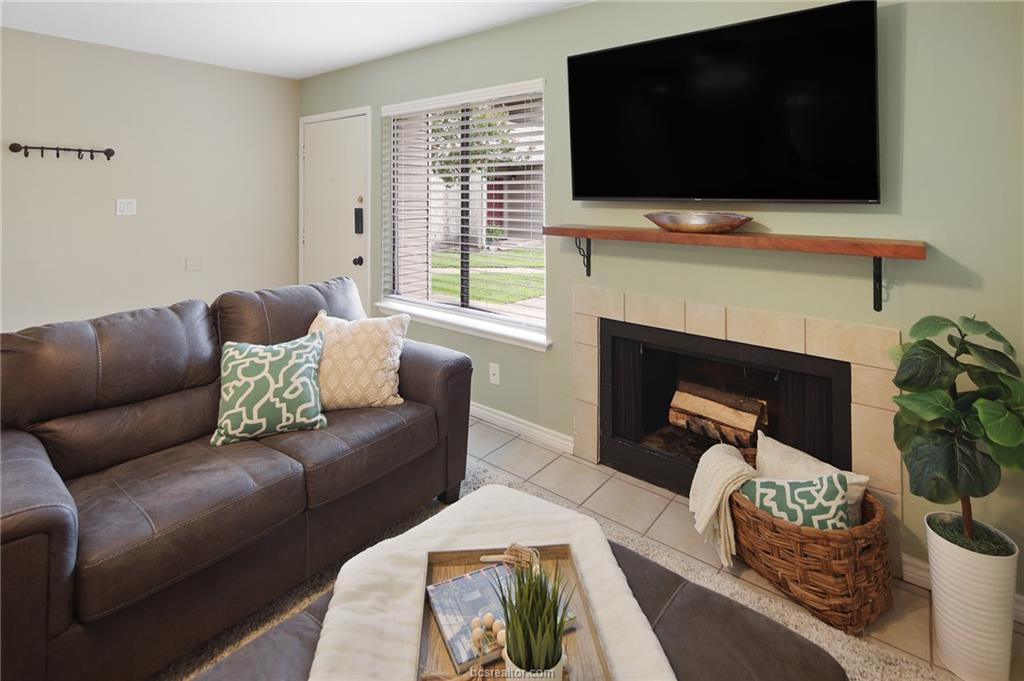 Very well-maintained 2-bedroom, 1.5-bath condo available for immediate move-in or for Spring semester—just minutes from Texas A&M! This charming two-story unit in the peaceful Woodstock Condos community features an updated kitchen with beadboard accents, tile flooring downstairs, and renovated bathrooms. Enjoy spacious bedrooms, great natural light, and a cozy living area that opens to a private, low-maintenance backyard with turf, a wood privacy fence, and hammock hooks—perfect for relaxing or studying outdoors. Washer, dryer, and fridge are included. With access to a community pool, nearby shopping, dining, and TAMU bus routes, this condo offers comfort, convenience, and value in the heart of College Station.