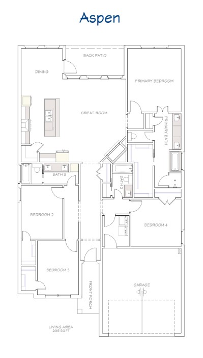 The Aspen is a functional plan that has everything you are looking for. Upon entering the front door you have a direct line of sight into the living room with a fantastic view of your backyard. The kitchen, living room and dining room are all open to each other which makes preparing a meal or entertaining seamless. In the kitchen you have a corner pantry, custom site-built cabinetry, stainless steel wall oven, intricate backsplash detail and an oversized island with a sneaky trash pull-out. The primary bedroom is large with natural light and direct access to a bathroom that is just what you need to get ready or unwind after a long day. Prepare for your day with these double vanities, freestanding or garden tub, a private toilet room, a grand walk-in shower and an abundantly spacious closet. Across the house you will find two bedrooms that share a great size bathroom with double vanities and a tub/shower combo with a wall tile surround. Near the laundry room is another bedroom with a private bathroom, a lovely space for short-term guests or family! Spend your evenings on the back patio of your brand new house!