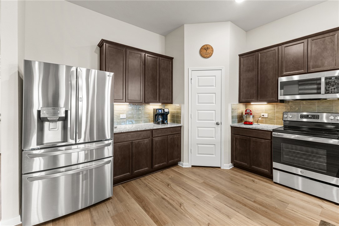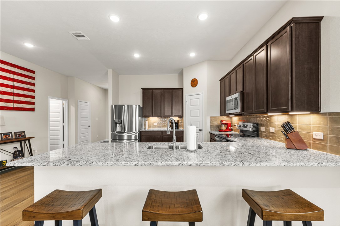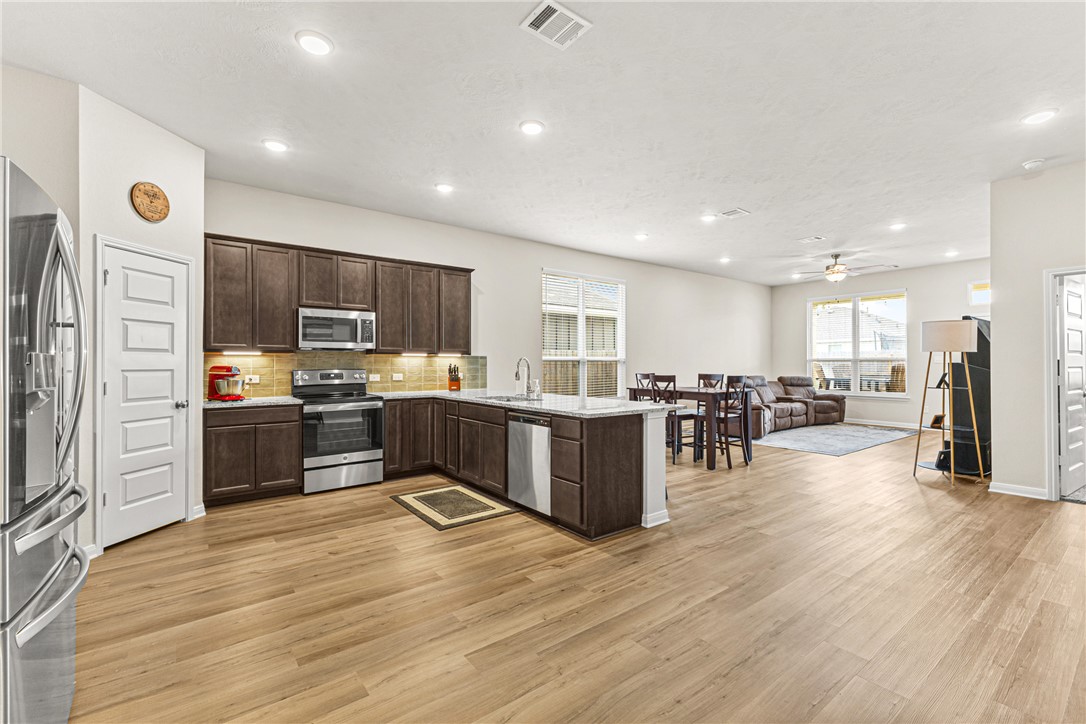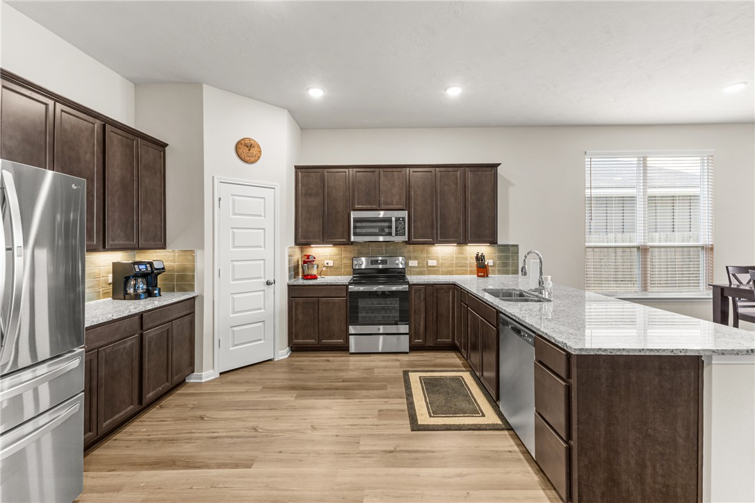 MOVE-IN READY in Pleasant Hill! BETTER THAN NEW! This like-new 4 bedroom, 3 bathroom home built in 2024 offers an impressive 2,136 sq. ft. of living space in a popular three-way split floor plan. The open-concept design features a spacious living area with a well-appointed kitchen that flows seamlessly into the dining and living spaces. Ample countertop space, plenty of storage, and an eating bar! Durable vinyl plank floors, 10-foot ceilings, and recessed LED lighting enhance the home’s modern appeal and function. The private primary suite includes TWO walk-in closets, a spa-like bath with dual vanities, soaking tub, and separate glass-enclosed shower. Two water heaters ensure plenty of hot water for multiple bathrooms, laundry, and kitchen use! Enjoy relaxing evenings on the covered patio overlooking the backyard. Pleasant Hill offers fantastic community amenities including a pool, walking trails, and a playground, all in a desirable Bryan location - just minutes from Lake Bryan, Texas A&M’s RELLIS Campus, Historic Downtown Bryan, and a short drive to Texas A&M University. With acceptable offer, the high-end LG 30 cu. ft. French Door refrigerator with craft ice maker, Samsung washer and dryer will convey! (all purchased new just one year ago for over $4,000!). Inspections from 2024 available for review. Don't pass up this great opportunity to get a larger home in excellent condition! Schedule your showing today!