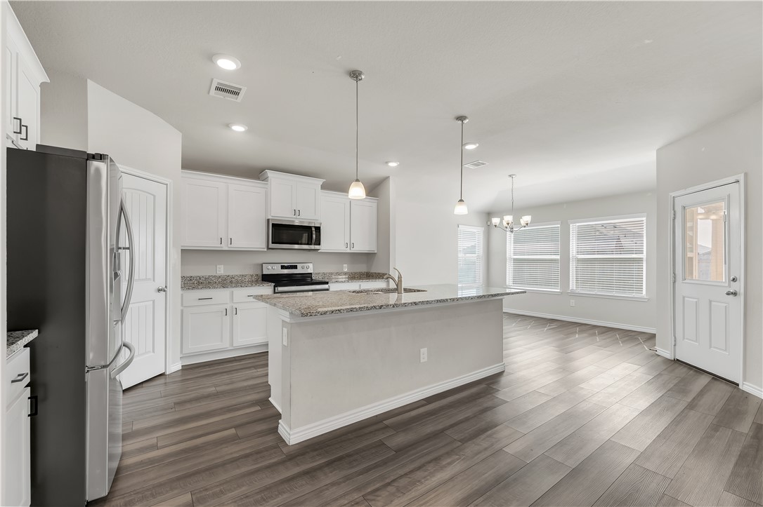 Located in the quiet and convenient Pleasant Hill community, this well-designed 4-bedroom, 2.5-bath home with a bonus room offers comfort, space, and style—just minutes from Lake Bryan, Texas A&M’s RELLIS Campus, and Historic Downtown Bryan. Sitting on a roomy corner lot, this home features the popular Prescott floor plan by DR Horton with an open-concept layout, perfect for both everyday living and entertaining. The kitchen is a standout with granite countertops, a large island, stainless steel appliances, white cabinetry, and a walk-in pantry. Enjoy a spacious primary suite complete with an oversized tiled shower and a walk-in closet that conveniently connects to the laundry room. Other highlights include luxury vinyl plank flooring in common areas, a covered back patio, and smart home features such as a video doorbell, programmable thermostat, and smart entry lighting. Built in 2022, this newer home also offers energy-efficient construction for added peace of mind.