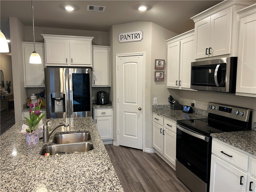 Located in the quiet and convenient Pleasant Hill community, this well-designed 4-bedroom, 2.5-bath home with a bonus room offers comfort, space, and style—just minutes from Lake Bryan, Texas A&M’s RELLIS Campus, and Historic Downtown Bryan. Sitting on a roomy corner lot, this home features the popular Prescott floor plan by DR Horton with an open-concept layout, perfect for both everyday living and entertaining. The kitchen is a standout with granite countertops, a large island, stainless steel appliances, white cabinetry, and a walk-in pantry. Enjoy a spacious primary suite complete with an oversized tiled shower and a walk-in closet that conveniently connects to the laundry room. Other highlights include luxury vinyl plank flooring in common areas, a covered back patio, and smart home features such as a video doorbell, programmable thermostat, and smart entry lighting. Built in 2022, this newer home also offers energy-efficient construction for added peace of mind. AVAILABLE for move-in NOW!