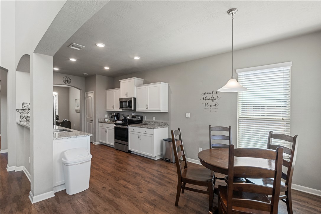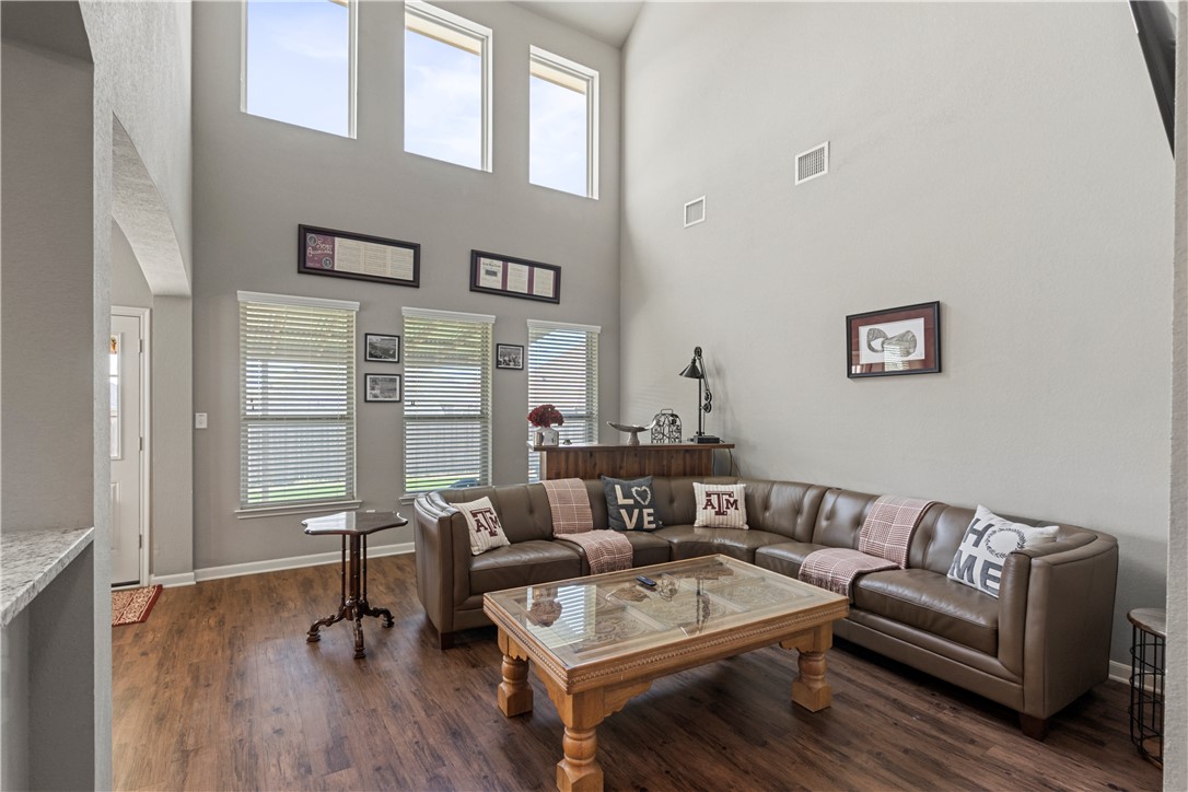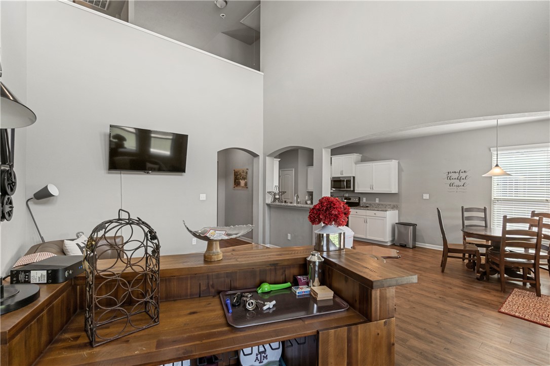 Discover the allure of this remarkable 4-bedroom, 3.5-bathroom residence with a thoughtful layout, this home offers both elegance and functionality across its expansive two-story design, complemented by a 2-car garage. Step inside to an inviting open-concept floor plan enriched with low-maintenance vinyl flooring and an abundance of natural light. The galley-style kitchen serves as the heart of the home, boasting modern white cabinets, sleek granite countertops, upgraded stainless steel appliances, a convenient pantry, and a cozy breakfast area. Adjacent to the kitchen, the formal dining room awaits special gatherings. The spacious family room features impressive two-story ceilings and provides delightful views of the backyard. The main floor's master suite offers a garden tub, separate shower, double sink vanity, and a generous walk-in closet for ultimate comfort. Venture upstairs to discover three additional bedrooms, two full bathrooms, and a versatile second living area, perfect for a study or hobby space. The interior's elegance is echoed outdoors with a private backyard, a HUGE COVERED PATIO area for entertaining, and a full yard sprinkler system. Don't miss out on this exceptional property in Bryan.