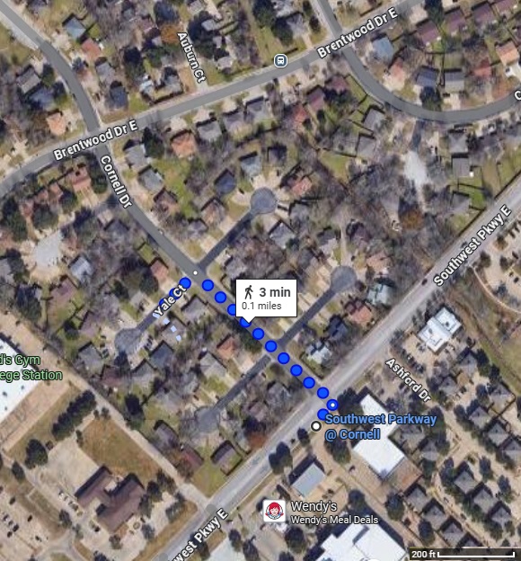 • Directions: Yale CIRCLE and Yale COURT are the same street. From Texas Ave, turn onto Southwest Pkwy heading NE. Then LEFT on Cornell and RIGHT on Yale.