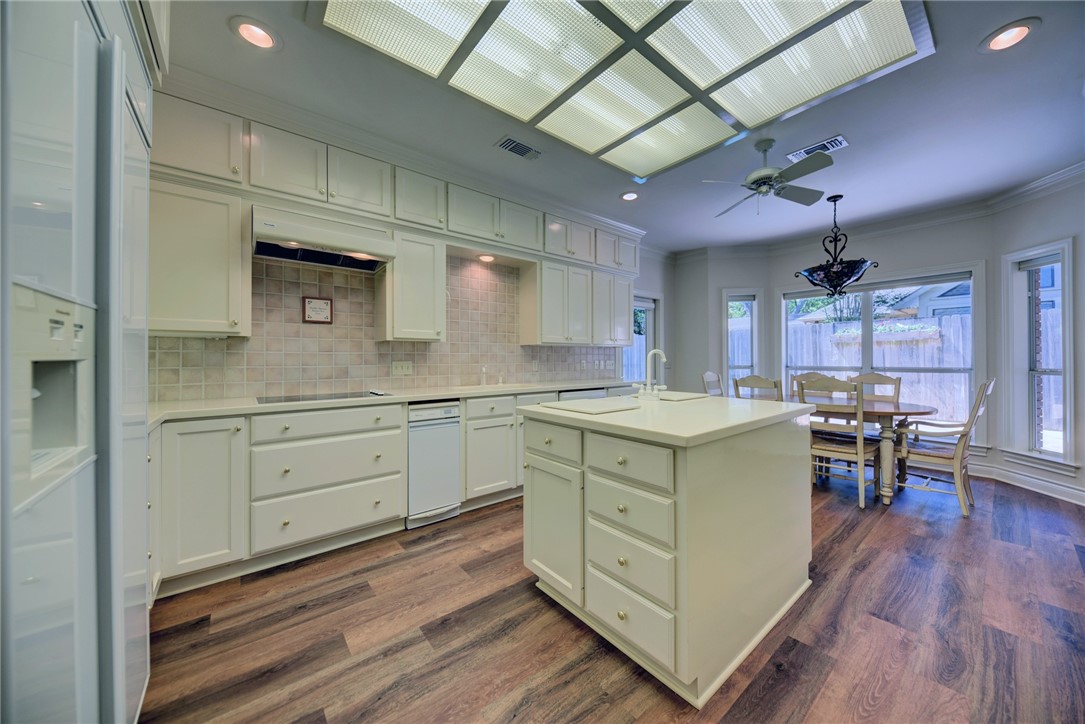 Elegant custom home in the desirable Creekwood neighborhood with high-quality features throughout. This home offers wood floors, high ceilings, crown molding, and a large open living area with fireplace. All three bedrooms have private baths and individual temperature control. The spacious primary suite includes pool access, double vanities, two toilet rooms, and two walk-in closets with built-in drawers.