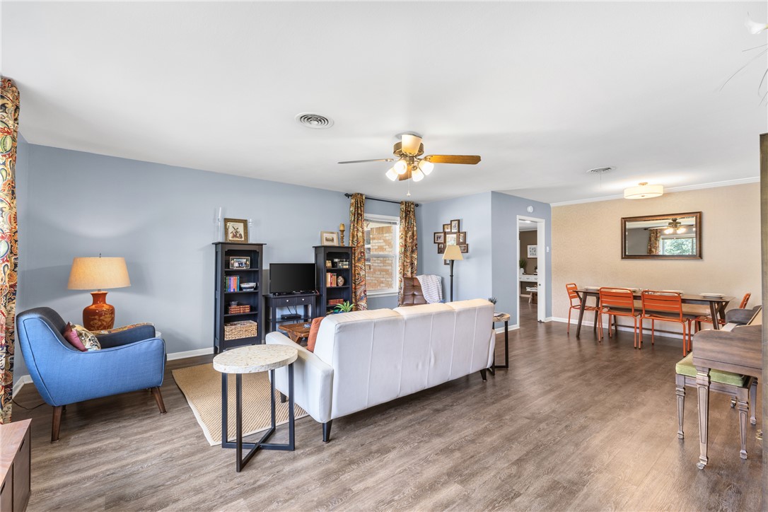 Charming, spacious, and energy-efficient — this BEAUTIFULLY updated home offers character, comfort, and flexibility in the heart of Culpepper Manor. Tucked away on a quiet block, this well-maintained property features three large bedrooms, three full bathrooms, and two sizeable living areas for everyday living, entertaining, or multi-generational needs. The kitchen shines with its thoughtful layout, brand new gas stove (2024), built-in microwave (2022), and plenty of room for cooking and gathering. Recent updates include durable vinyl plank flooring (2018), fresh interior paint, low-E vinyl windows, a new front door, and added GFCI outlets in the kitchen and garage for peace of mind. Step outside to the screened and insulated patio that overlooks a beautifully landscaped backyard with garden beds, a dog run, and a full sprinkler system. Practical updates bring peace of mind, too: a new roof (2020), water heater (2022), spray-foam insulation for energy efficiency, and a newer garage door motor. ADA-friendly features include a wheelchair ramp and accessible layout, adding thoughtful convenience. All this, just minutes from shopping, medical facilities, and schools — a home that truly checks all the boxes!