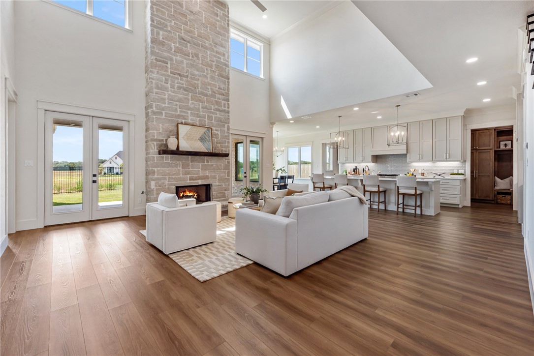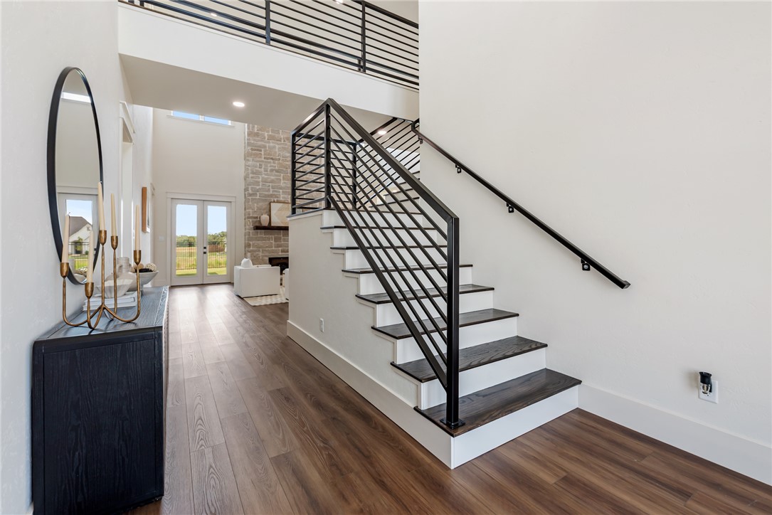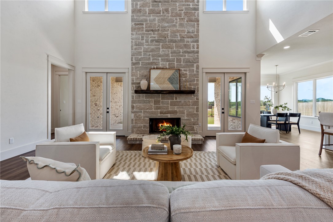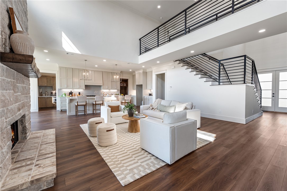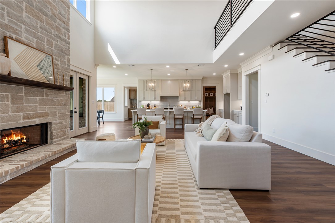 Step inside and prepare to be wow'd! This brand new construction by Rafter 12 Custom Homes marries timeless sophistication with elegant modern touches. The house features five bedrooms with three of those being downstairs, and three and a half bathrooms. The living room boasts a gorgeous stone fireplace from floor to ceiling that carries into the chef's dream kitchen, showcasing a large island with ample seating and a butler's pantry for all your extra appliances or more food prep space when entertaining. Large master suite features a raised cathedral ceiling with a custom wood beam and lots of natural sunlight. The bathroom offers pure relaxation with a walk-in shower featuring two dual shower heads and a soaking tub, all behind glass. Not to mention the large closet with his and her built-in drawers. The laundry room runs off the master closet, making laundry more convenient. Up the gorgeous, modern stairs, you'll find two bedrooms and a full bath with an additional 190 square feet of unfinished extra space that can be finished out for another bedroom or media room if desired.