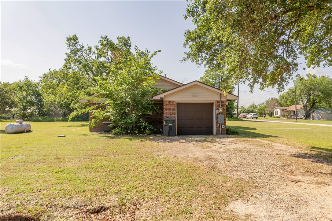 Charming 2 bedroom, 1.5 bath brick home located in the heart of Iola, just a few blocks from Iola ISD. Situated on a spacious corner lot of nearly half an acre, this home offers plenty of room to enjoy with large mature trees providing shade and character. Inside, you’ll find a living room with vaulted ceilings, tile and carpet flooring throughout the home, and a functional kitchen with a gas cooktop and oven, along with a refrigerator and dishwasher. The primary bedroom includes a convenient ensuite half bath, while the hallway full bath offers a vanity area and tub/shower combination. Both bedrooms include large closets for storage. Additional highlights include a covered back patio perfect for relaxing outdoors, a one-car attached garage with washer and dryer connections. Wickson Water with a conventional septic system. A wonderful opportunity to own a home in a quiet small-town setting!