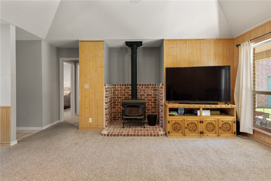 Tucked beneath mature trees and backing to Hole #12 green, this one-story home offers rustic charm and serene golf course views in the heart of Hilltop Lakes. Features include warm wood tones, a wood-burning stove, open living/dining/kitchen with island, large windows, and a covered back patio. The primary suite includes a jetted tub, double sinks, and stand-up shower. Outside: 625 sf 2-car garage with 150 sf storage, 360 sf detached game room, 600 sf RV cover, and a well for the sprinkler system. Homeowners enjoy free golf—guests must pay unless the nearby vacant lot on Jamaica Ln, listed for $12,000, is also purchased, granting access for owner + 3 guests. Hilltop Lakes amenities: 18-hole golf course, 5 lakes, post office, lodge, parks, horse stables, restaurant, air strip, campgrounds, tennis courts & more! A rare chance to enjoy the full resort lifestyle.