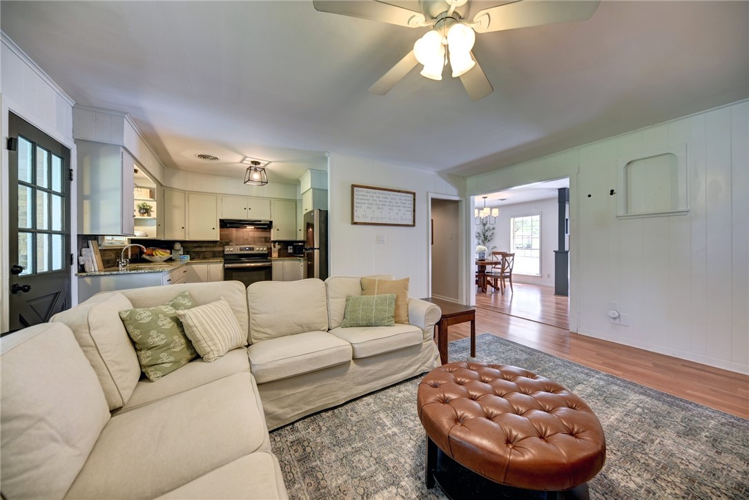 Welcome to this spacious and inviting open-concept home, perfect for entertaining both indoors and outdoors. Enjoy gatherings on the covered back porch overlooking a large, beautifully shaded yard dotted with mature pecan trees—your private oasis for relaxation and play. Plus, step out onto a freshly poured back patio for barbecues and outdoor living.
