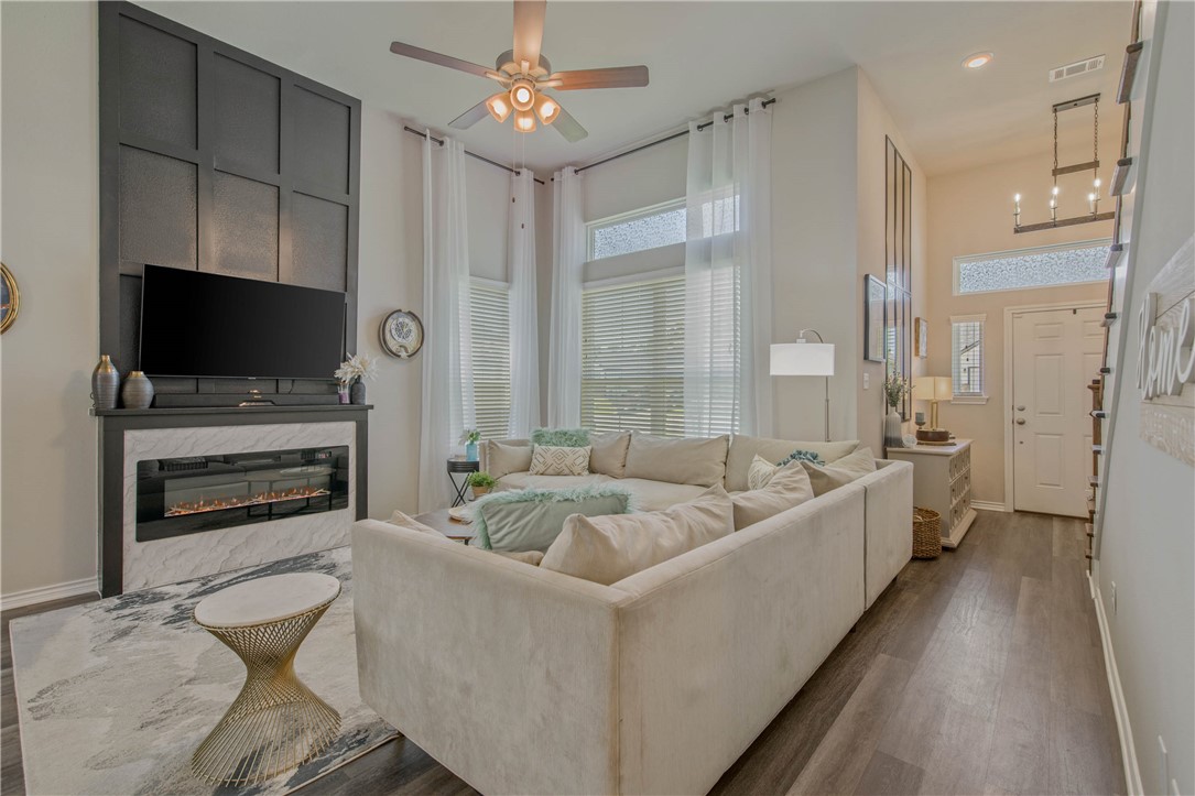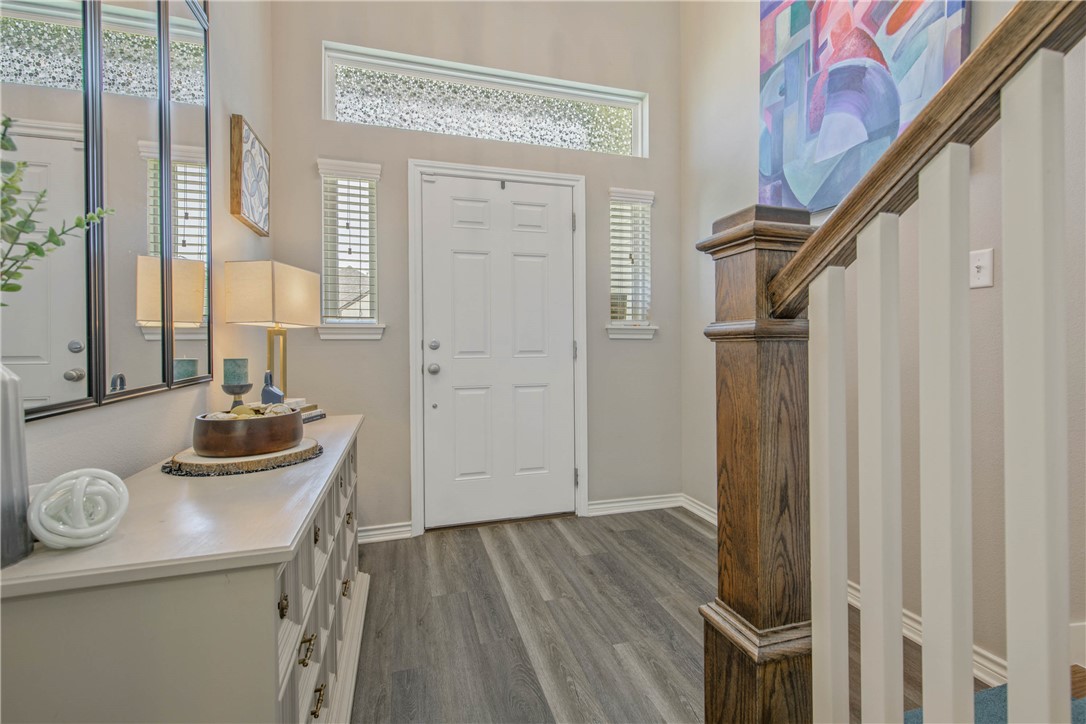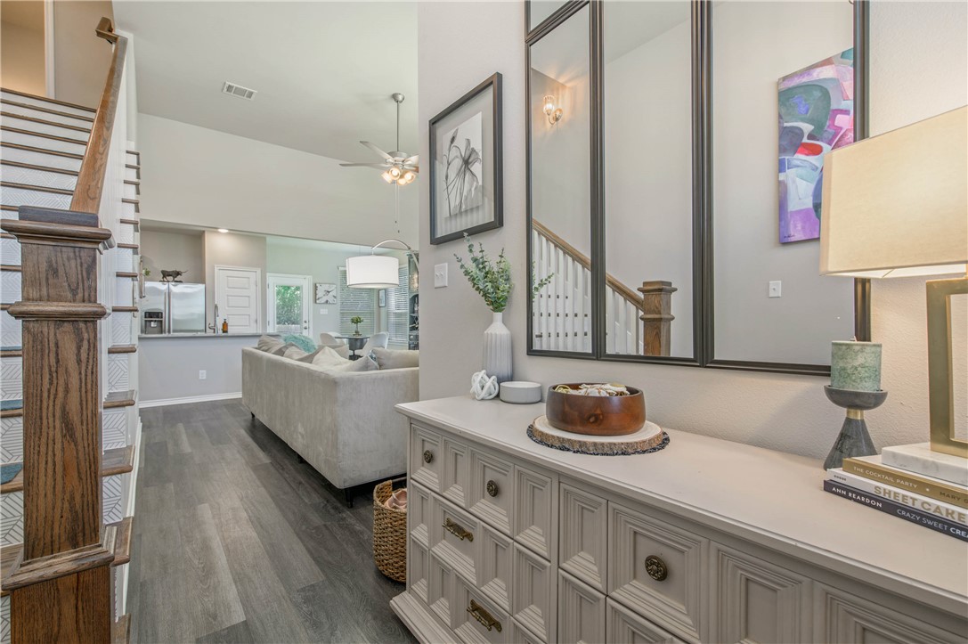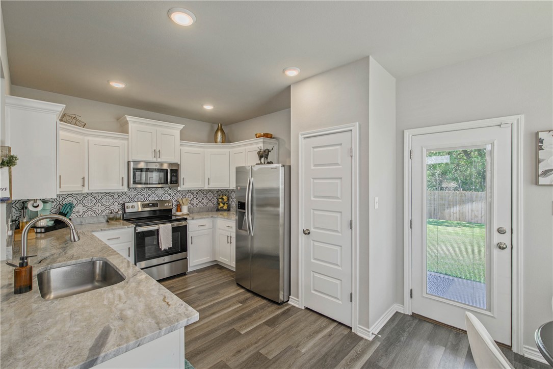 The Warwick in Sage Meadow is a beautiful 3-bedroom, 3.5-bathroom home with a 2-car garage, nestled in a desirable neighborhood in Bryan that’s just 3 years old. Backing up to peaceful green space, this open-concept home offers a spacious living room, dining area, and kitchen with granite countertops, stainless steel appliances, custom cabinets, and a large peninsula with plenty of storage. The primary suite is conveniently located downstairs with an ensuite featuring a separate tub, walk-in shower, double granite vanities, and a private toilet room. Upstairs, you’ll find two more bedrooms, each with its own bathroom, plus a versatile space perfect for an office or play area. The main floor includes luxury vinyl plank flooring, while the bedrooms are carpeted and the bathrooms feature beautiful tile. With two closets on the main level and additional storage upstairs, you’ll never be short on space. Outside, enjoy a covered back porch, sprinkler systems in both the front and back yards, and a serene setting next to the green space.