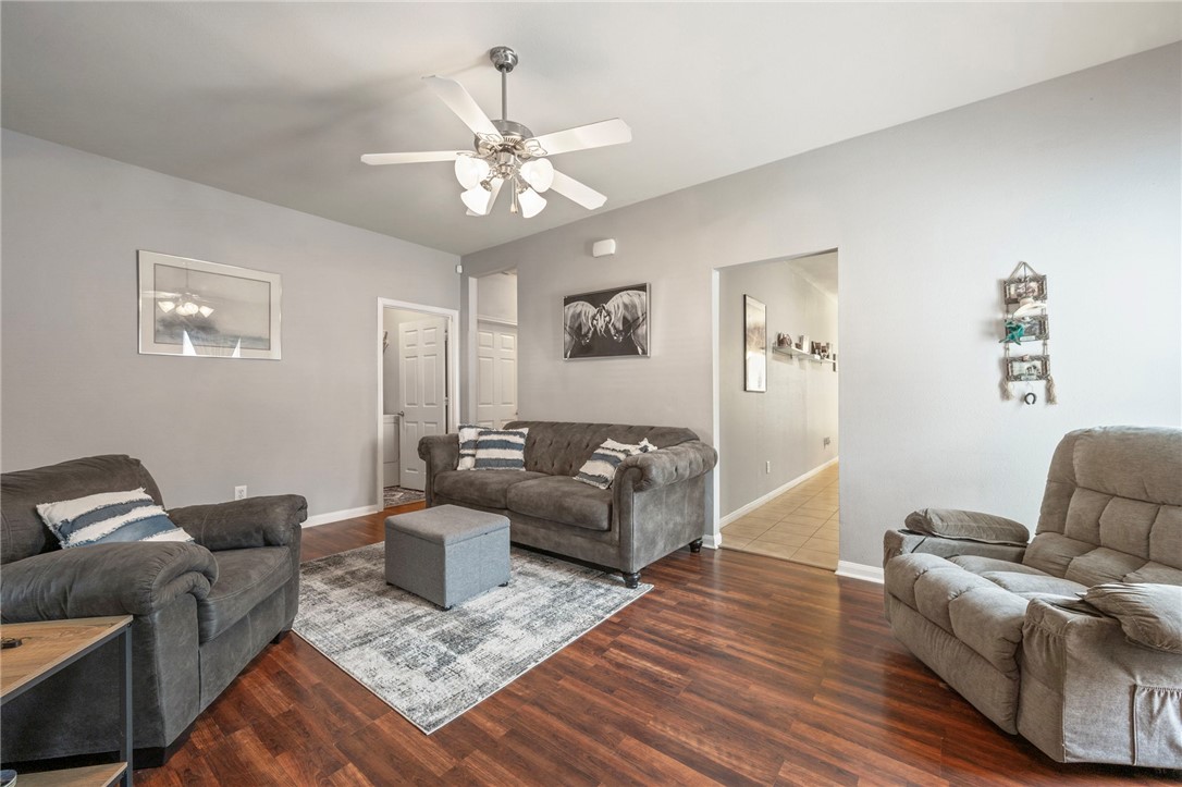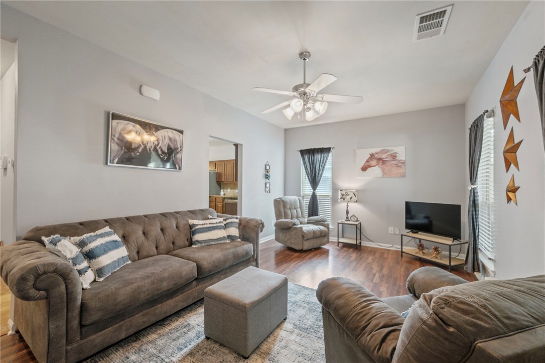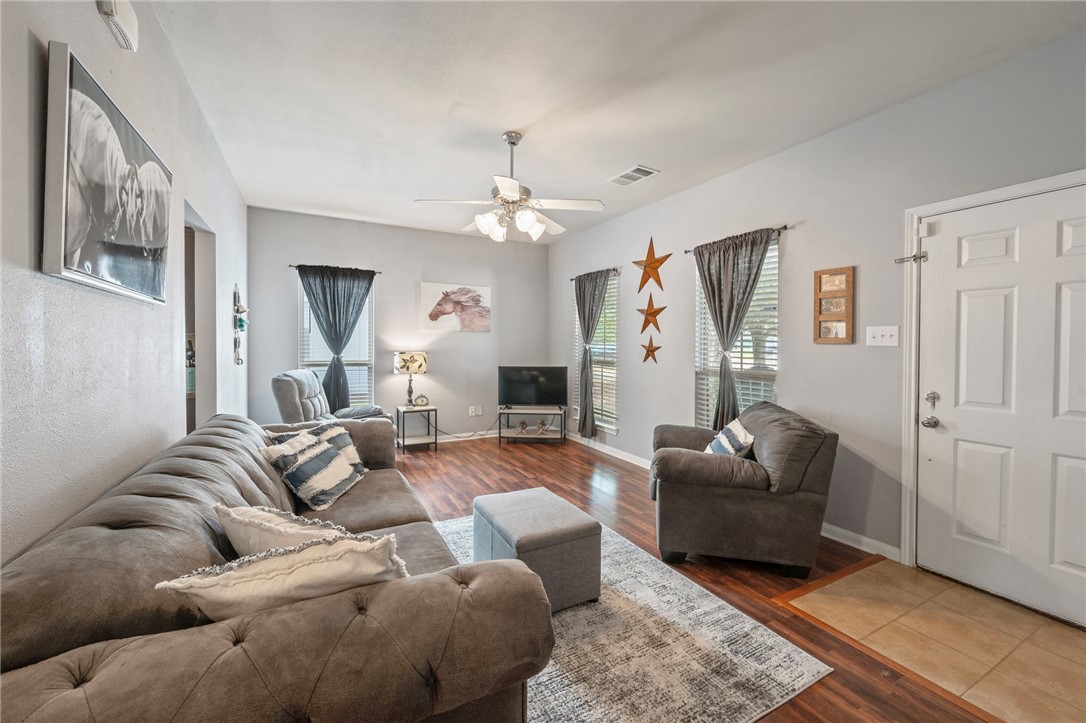 Must see this charming 3 bed 2 bath home with a spacious covered front porch ready for a relaxing evening. It includes a separate living room and also an open dining room and Kitchen Combo spacious enough for hosting and entertaining. With a covered patio, this back yard is private and backs up to a green space with lots of trees behind the fence line. Call to tour this well maintained home now!